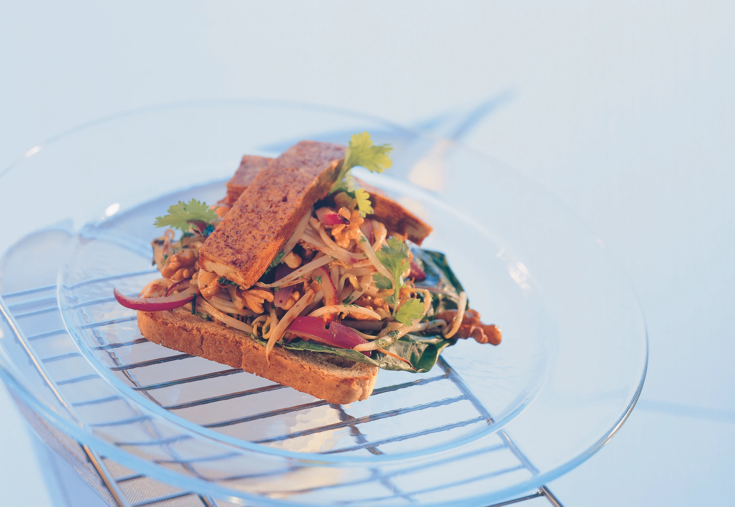 Vollkorntoast mit Gemüse und würzigem Tofu