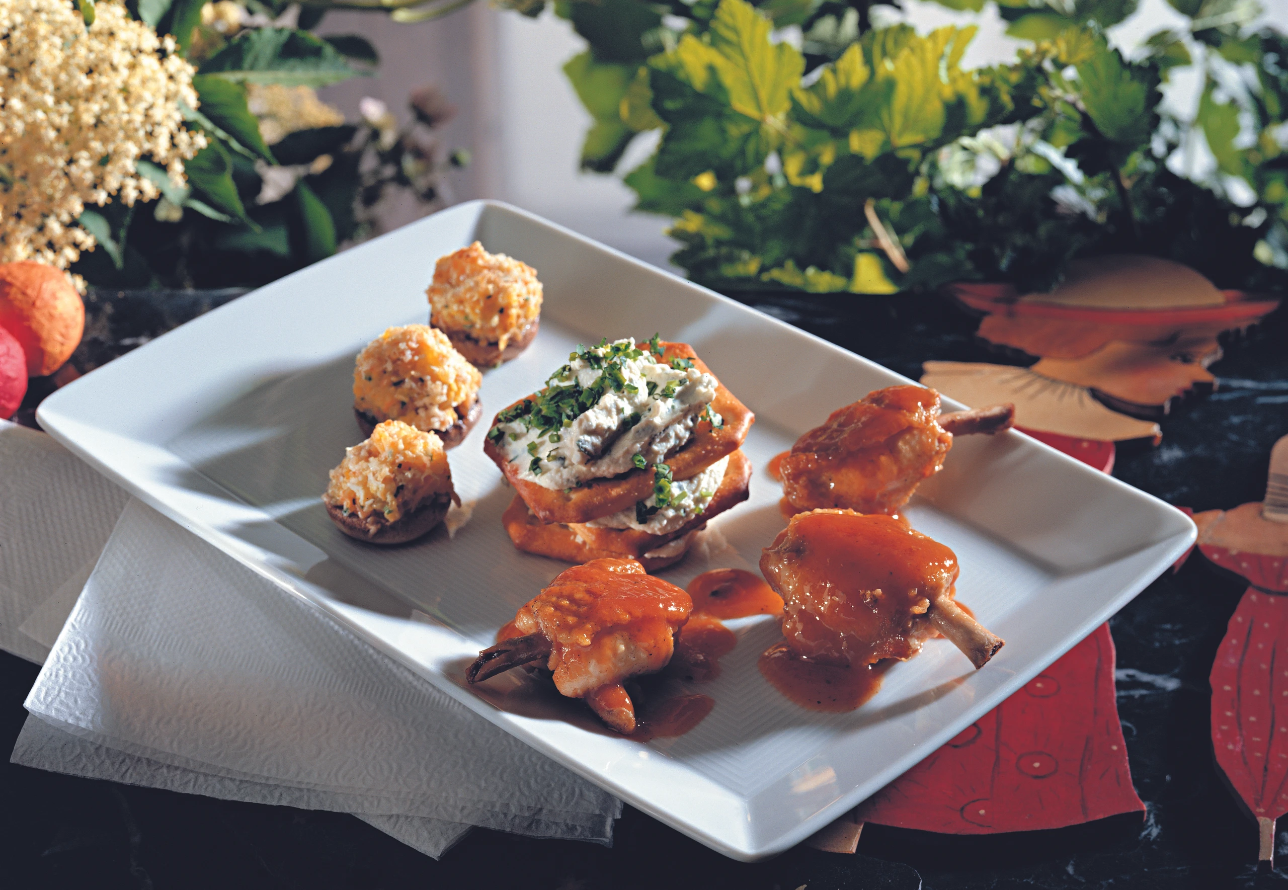 - Champignons putzen, kurz waschen, trockentupfen und die Stiele herausdrehen.