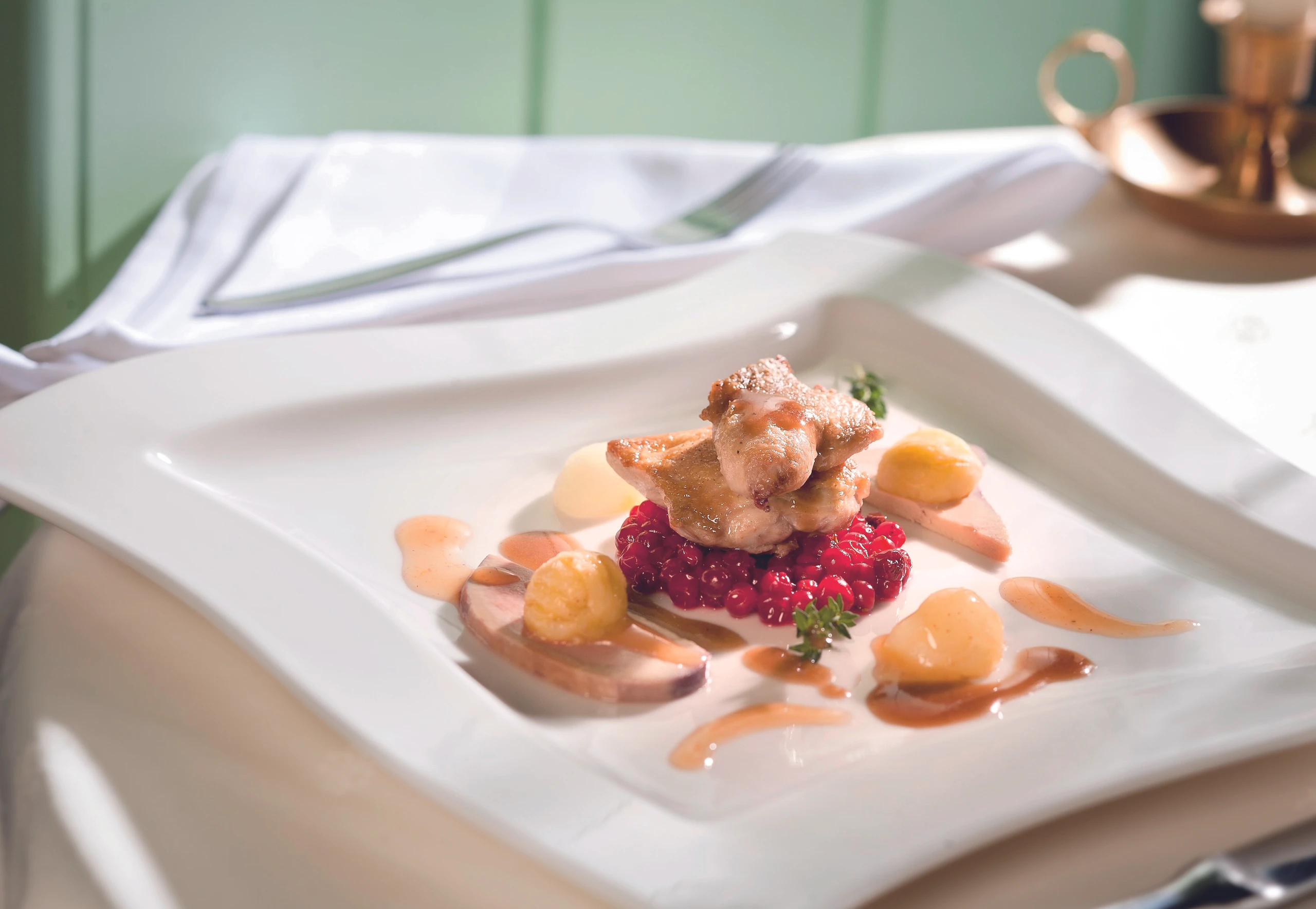 Wachtel auf Preiselbeeren mit Entenleber und Maroni