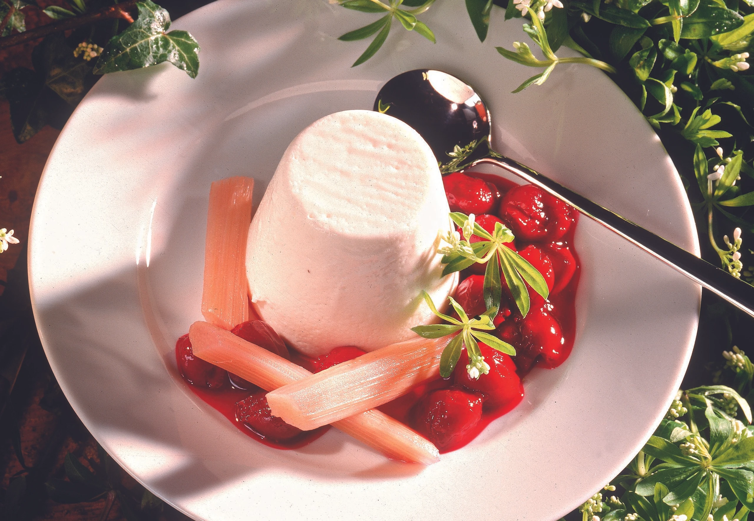 Masse in Förmchen füllen, mit Frischhaltefolie zudecken. Mus im Kühlschrank festwerden lassen (dauert mindestens 3 Stunden). Vor dem Servieren Förmchen kurz in heißes Wasser tauchen und das Mus auf Teller stürzen. Zum Waldmeister-Mus passen außer Rhabarber- und Kirschen kompott sehr gut auch frische Früchte.