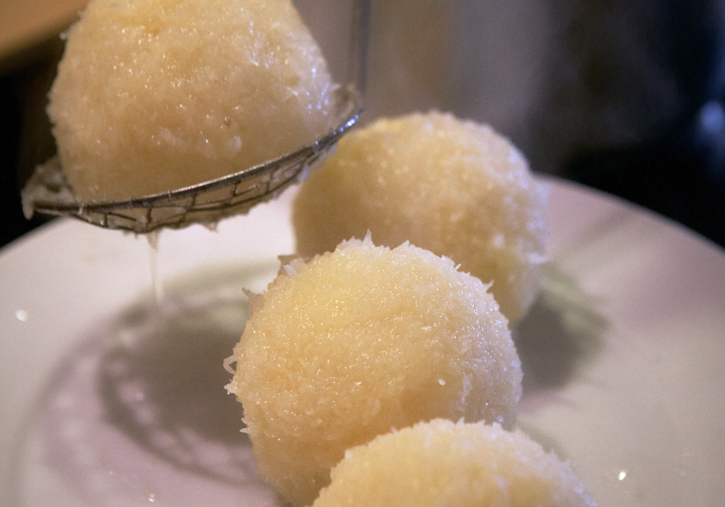 Die rohen Erdäpfel schälen, reiben und auspressen. Die gekochten Erdäpfel grob reiben, mit den rohen und Salz vermischen. Gut durchkneten und Knödel formen. Knödel vor dem Kochen in wenig Mehl wenden, in Salzwasser 20–25 Minuten kochen.