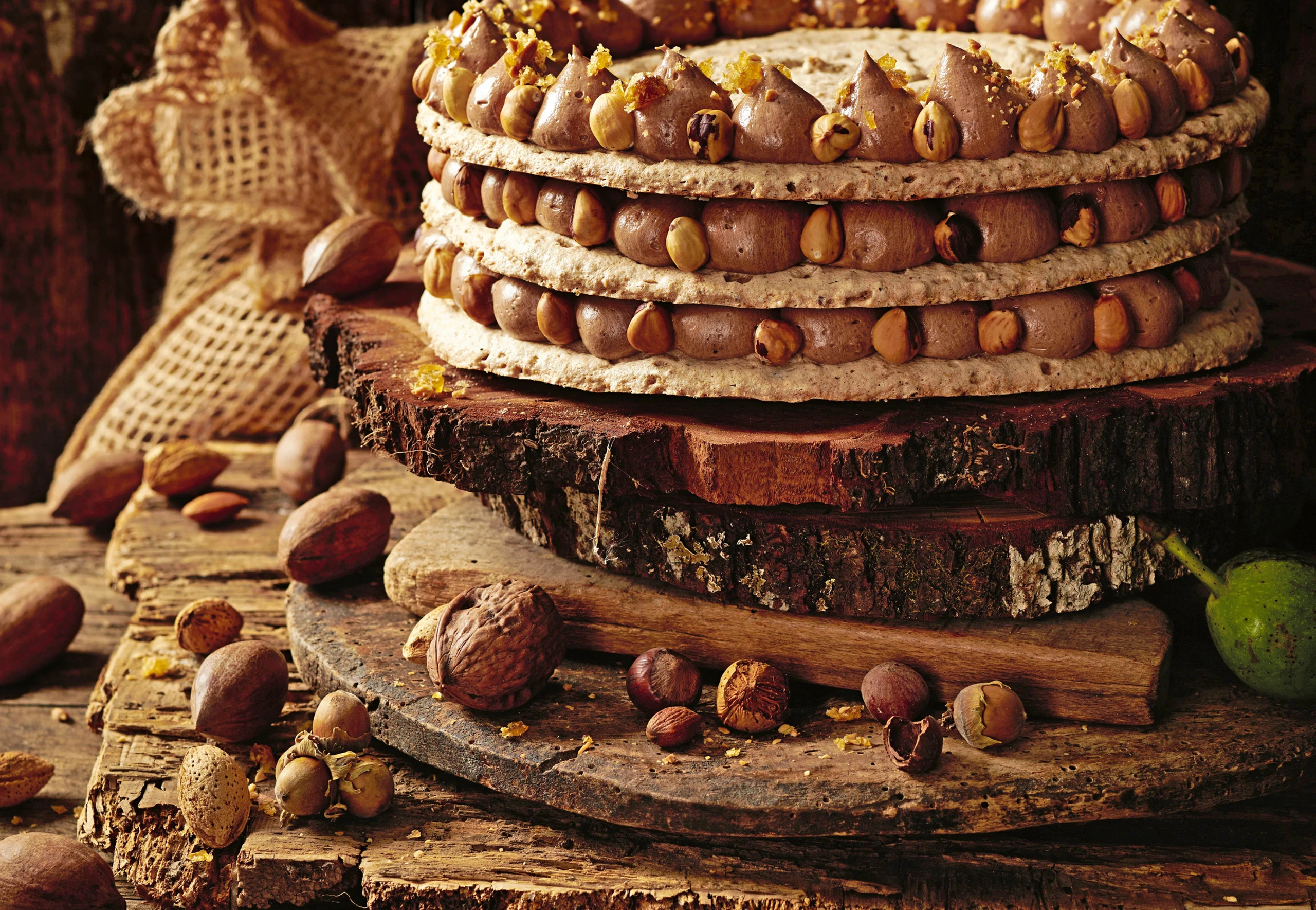 Für die Deko Haselnüsse auf einem Backblech verteilen und im Rohr (mittlere Schiene) ca. 12 Minuten rösten, bis sie zu duften beginnen. Nüsse noch warm in ein Geschirrtuch einschlagen und aneinanderreiben, bis sich die Schale löst.