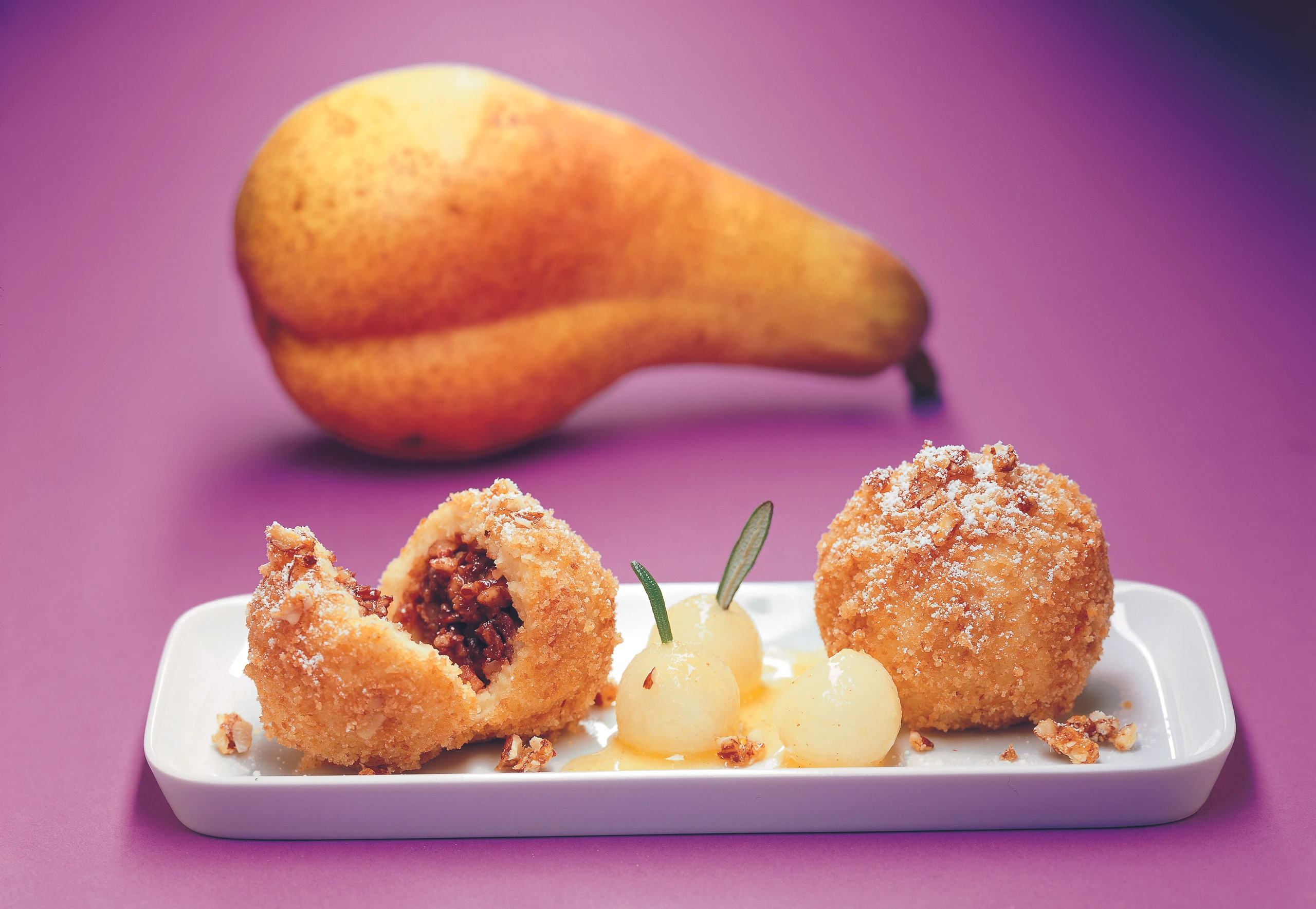 - Birnen schälen und kleine Kugeln ausstechen. Butter und Honig erwärmen, Birnenkugeln und Rosmarin zugeben und kurz schwenken. Warm mit den Knödeln anrichten.