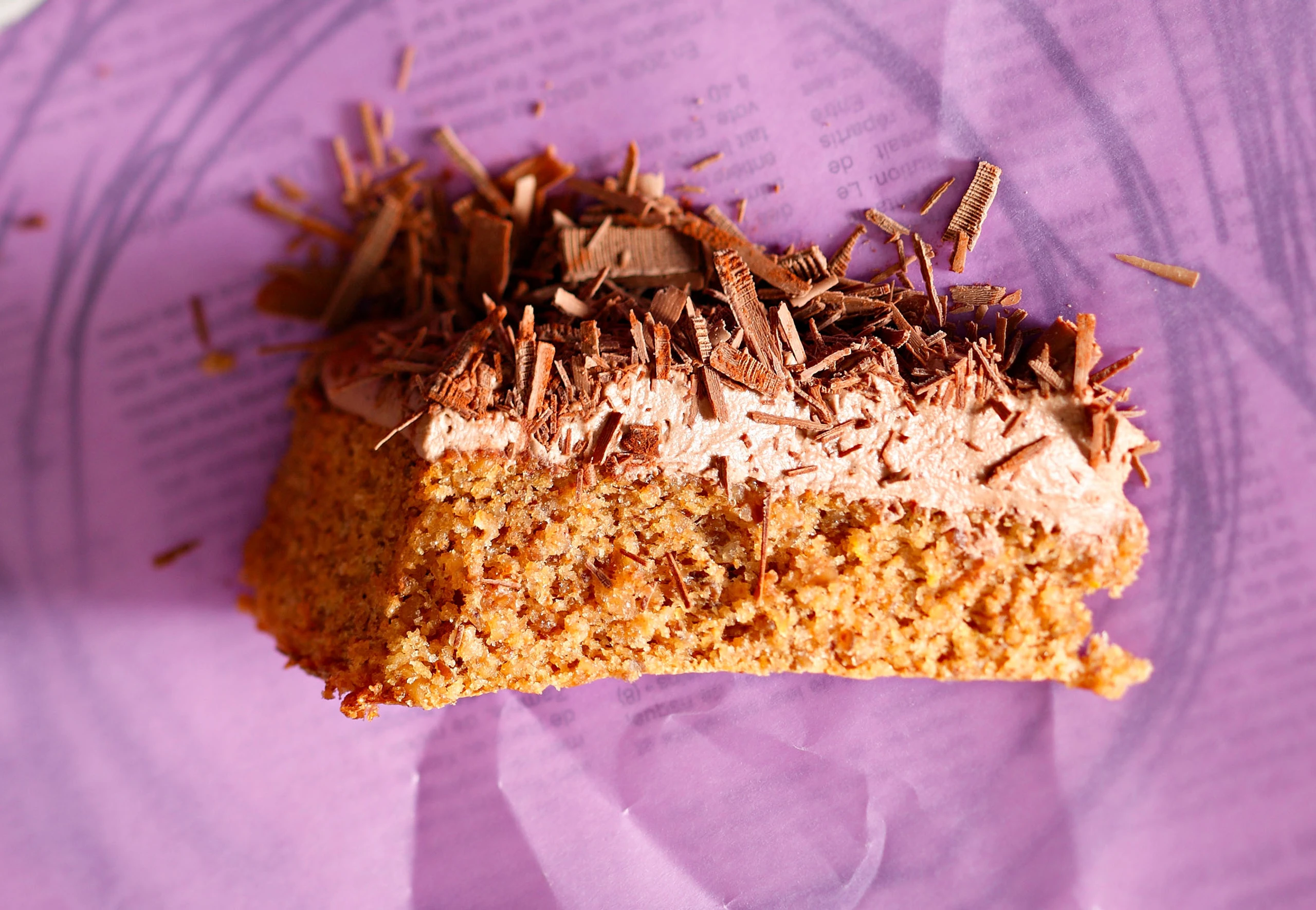 Gekühlte Creme mit dem Schneebesen aufschlagen und in einen Dressiersack mit glatter Tülle füllen. Creme ringförmig auf die Torte dressieren. Für die Garnitur von der übrigen Kuvertüre mit einem Sparschäler feine Späne abschneiden. Torte mit Schokospänen bestreuen und mit Kakao besiebt servieren.
