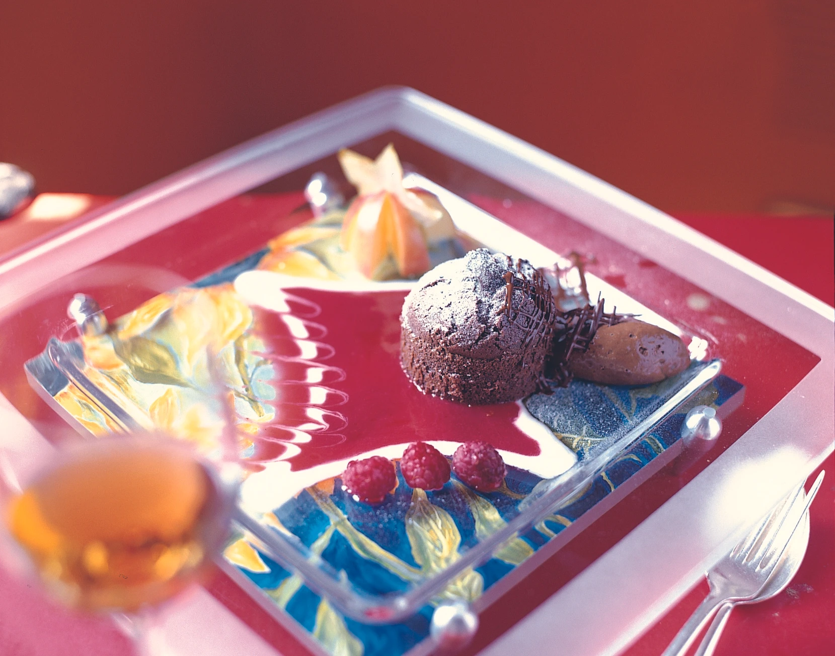 Auflaufförmchen (Inhalt 125 ml) mit Butter ausstreichen. Backrohr auf 180 °C vorheizen. Schokolade klein hacken, Butter in Stücke schneiden und gemeinsam in einem Wasserbad schmelzen (soll nur lauwarm werden!).