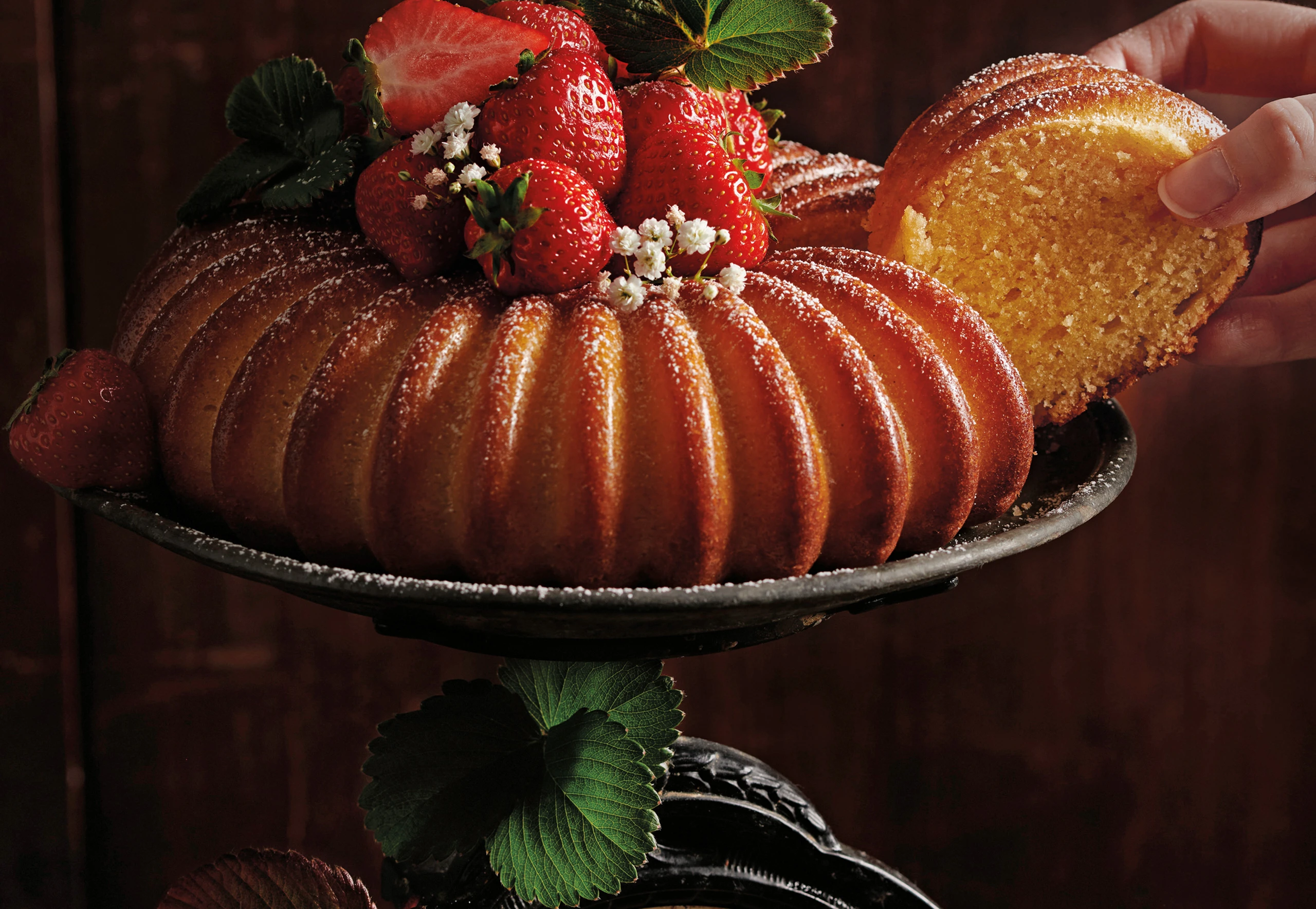 Obers, Zucker und Vanille cremig (nicht steif) mixen. Eier einzeln unterrühren. Mehl, Backpulver und Kuvertüre unterheben. Masse in die Form füllen und im Rohr (mittlere Schiene) ca. 45 Minuten backen. Herausnehmen und überkühlen lassen. Oberskuchen aus der Form stürzen, mit Staubzucker bestreuen und noch warm mit den frischen Erdbeeren genießen.