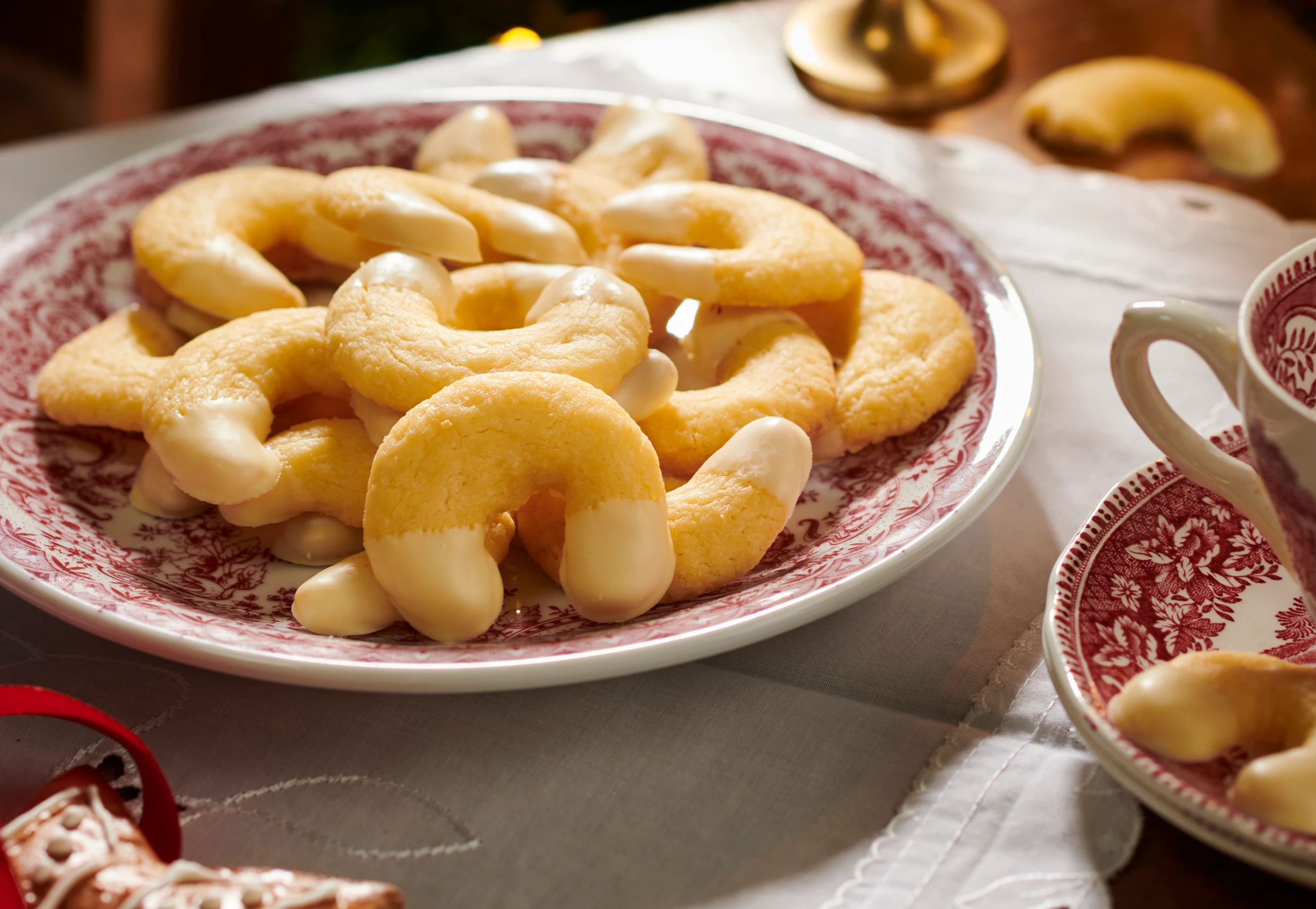 Kipferl auf die Bleche legen und nacheinander im Rohr (mittlere Schiene) ca. 12 Minuten hell backen. Herausnehmen und auskühlen lassen.