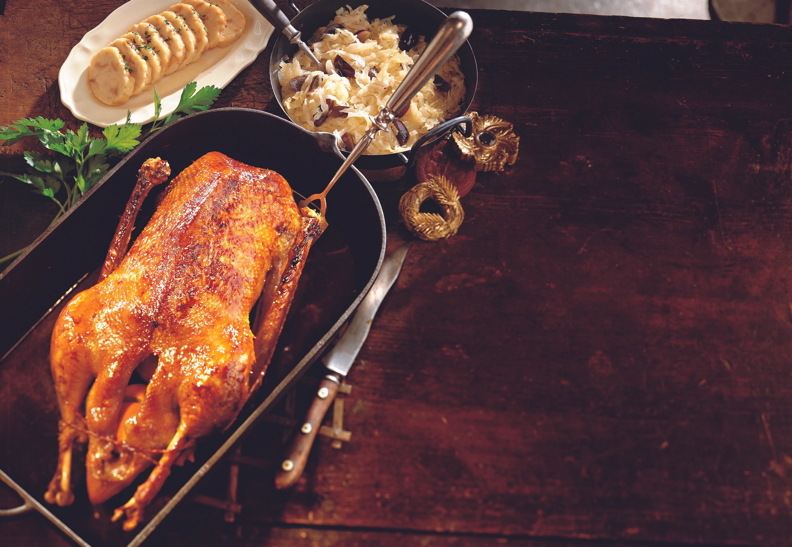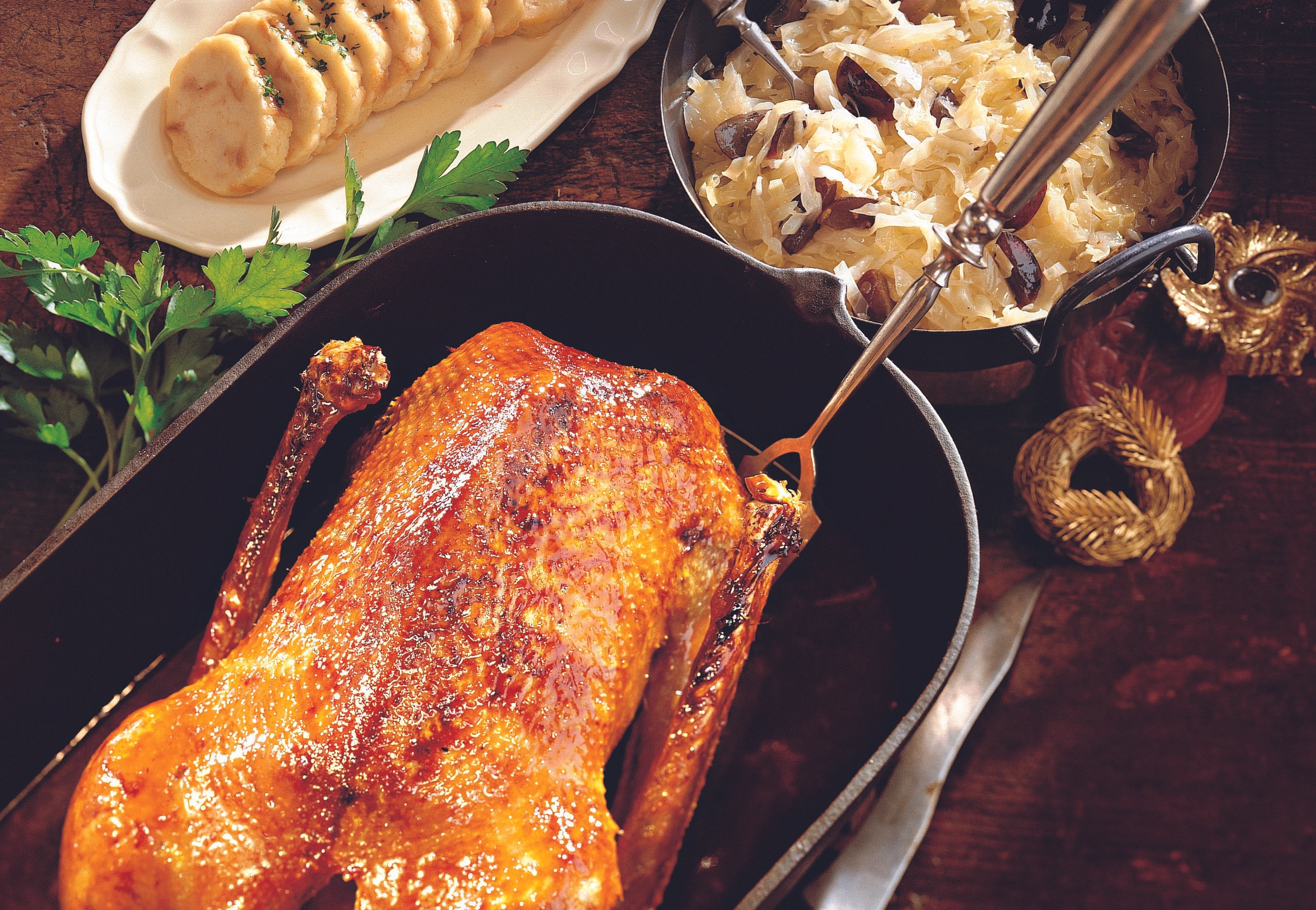 Weihnachtsgansl mit Serviettenknödeln und Trauben-Weinkraut