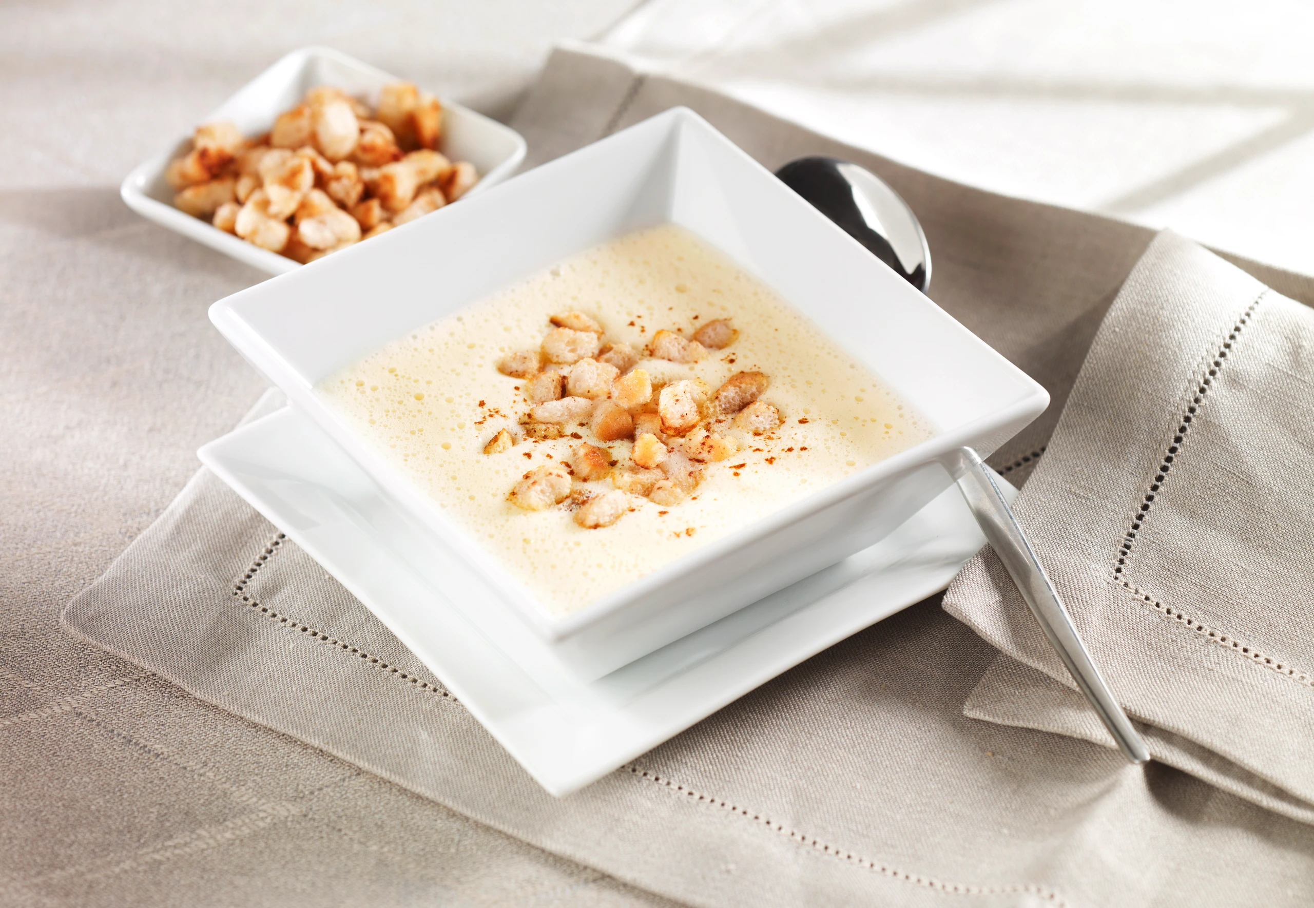 - Suppe aufkochen. Dotter, Obers und Wein verquirlen, unter Rühren in die heiße Suppe gießen und bei schwacher Hitze schlagen (Schneebesen), bis die Suppe dickcremige ist. Suppe mit Salz und Muskat würzen.