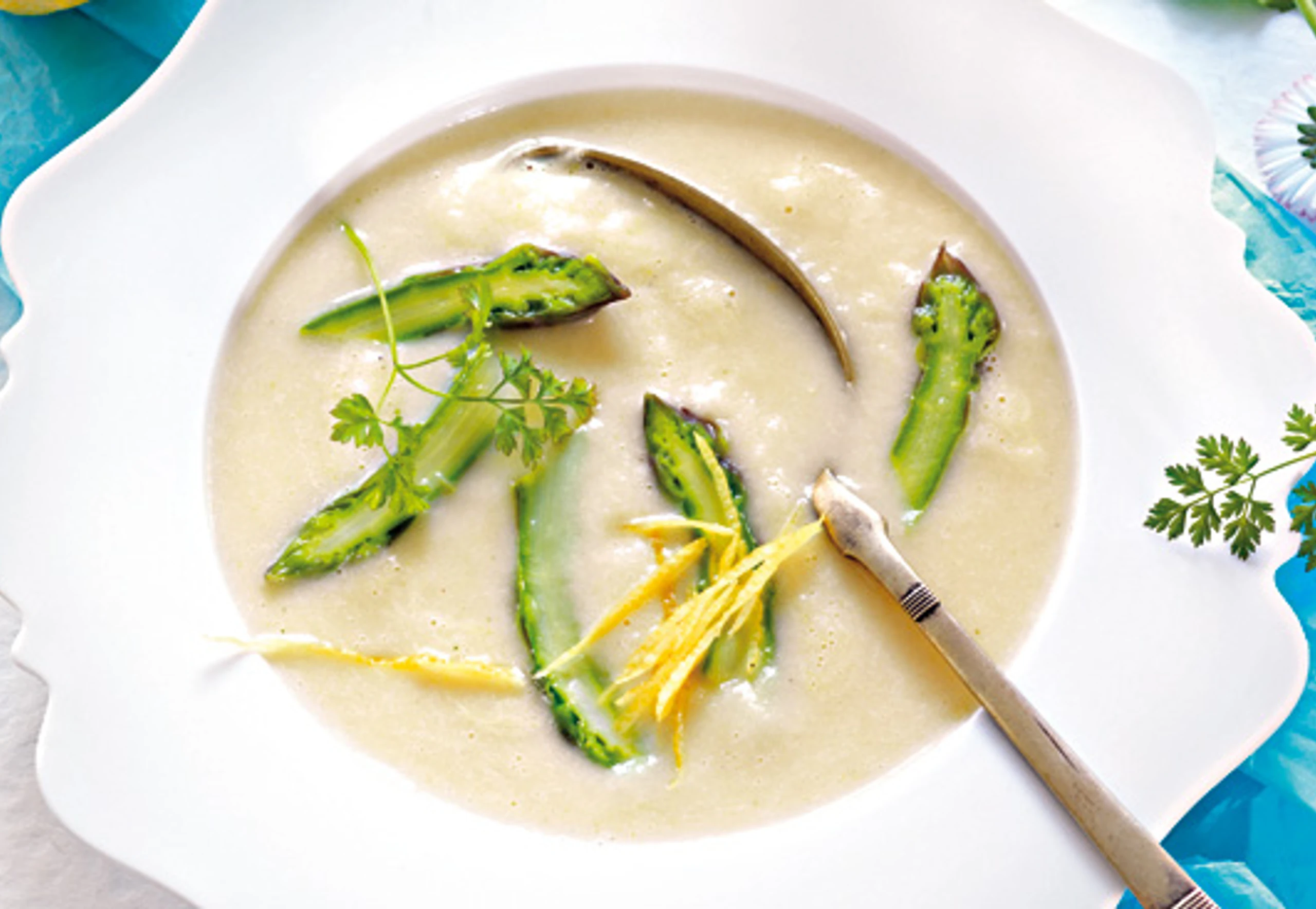Weiß-grüne Spargelsuppe