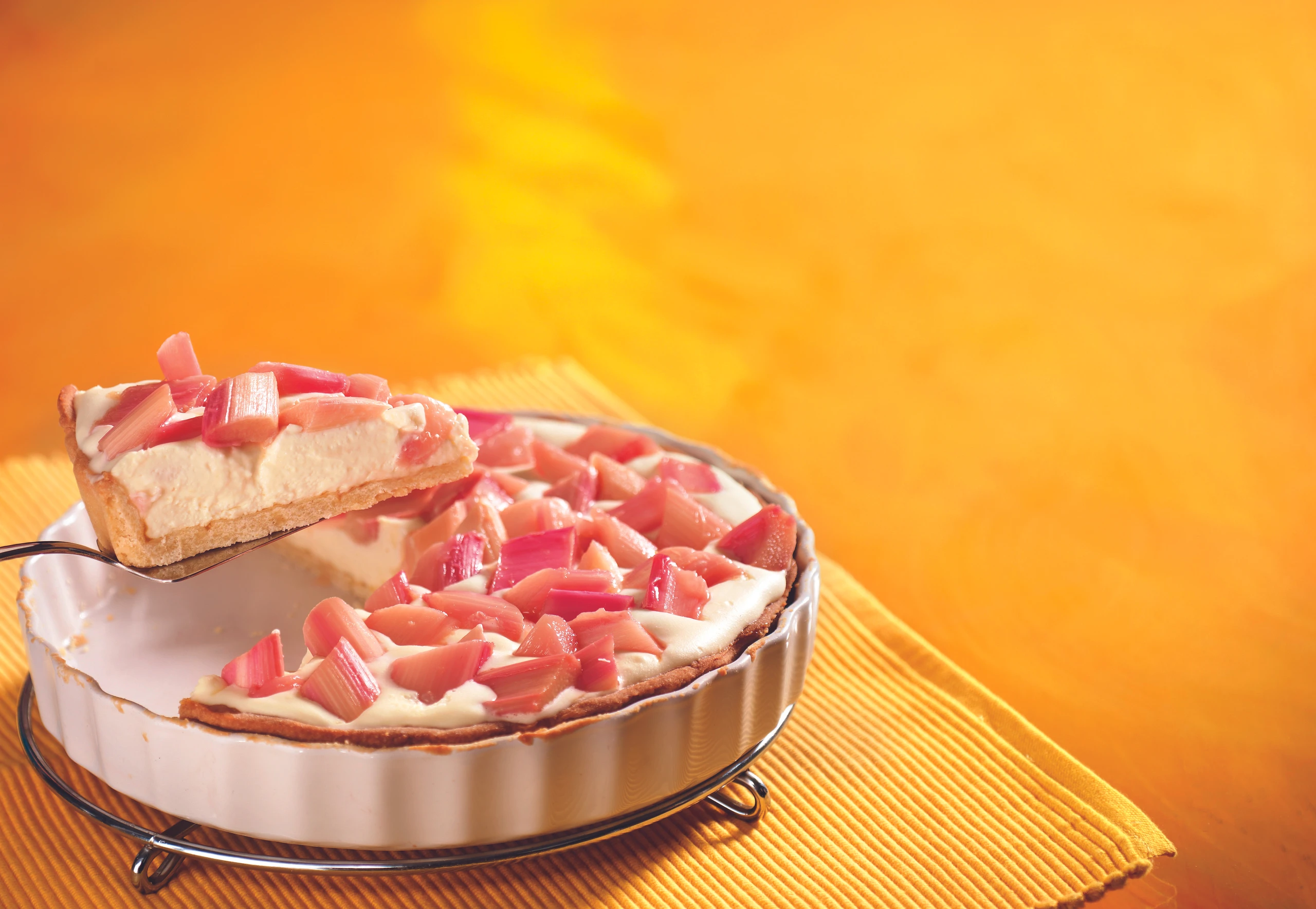 Für die Schokocreme Gelatine in kaltem Wasser einweichen. Milch aufkochen und die Kuvertüre darin unter Rühren schmelzen. Gelatine gut ausdrücken und darin auflösen. Creme auf ca. 35°C (lippenwarm) abkühlen lassen. Obers schlagen und unterheben. Creme auf dem Teig verteilen mit Rhabarber belegen. Tarte mit Frischhaltefolie zugedeckt für ca. 5 Stunden kühl stellen.