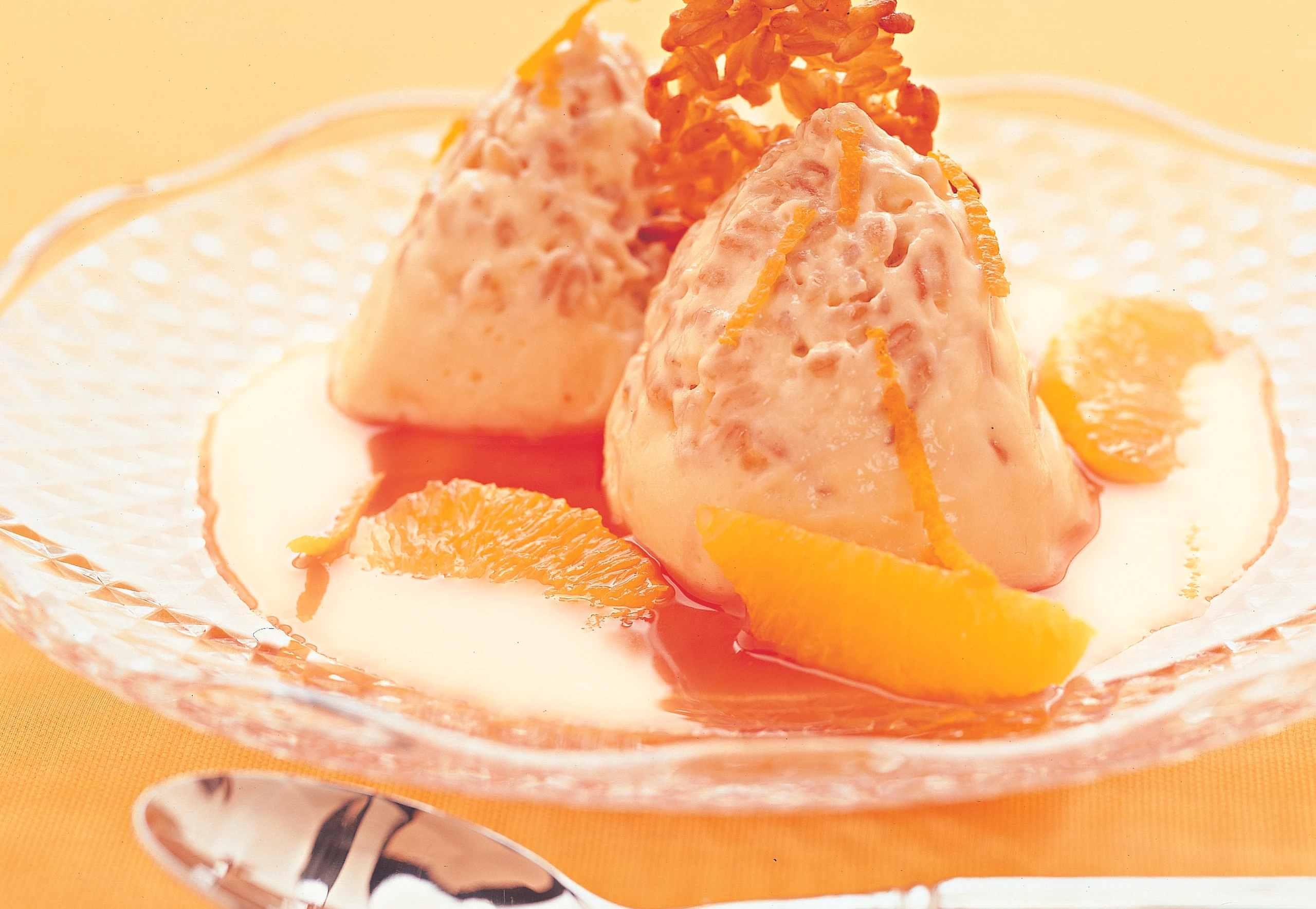 Weißes Reis-Schokomousse mit Campari-Orangensauce