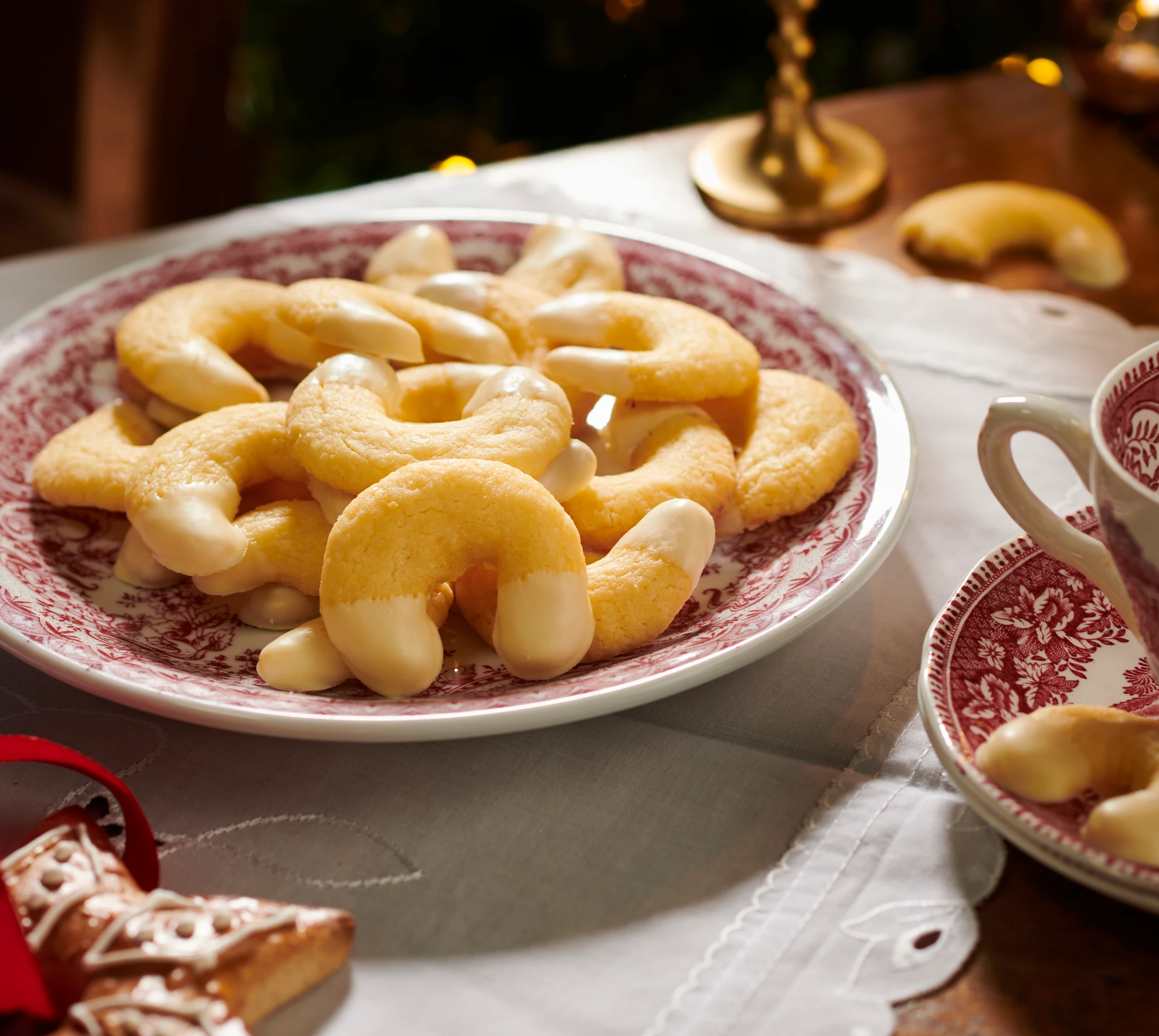 Kipferl auf die Bleche legen und nacheinander im Rohr (mittlere Schiene) ca. 12 Minuten hell backen. Herausnehmen und auskühlen lassen.