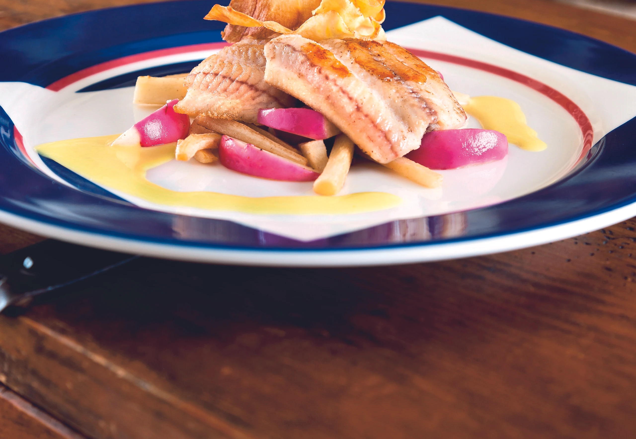 Welsfilet mit Pastinaken-Radieschengemüse