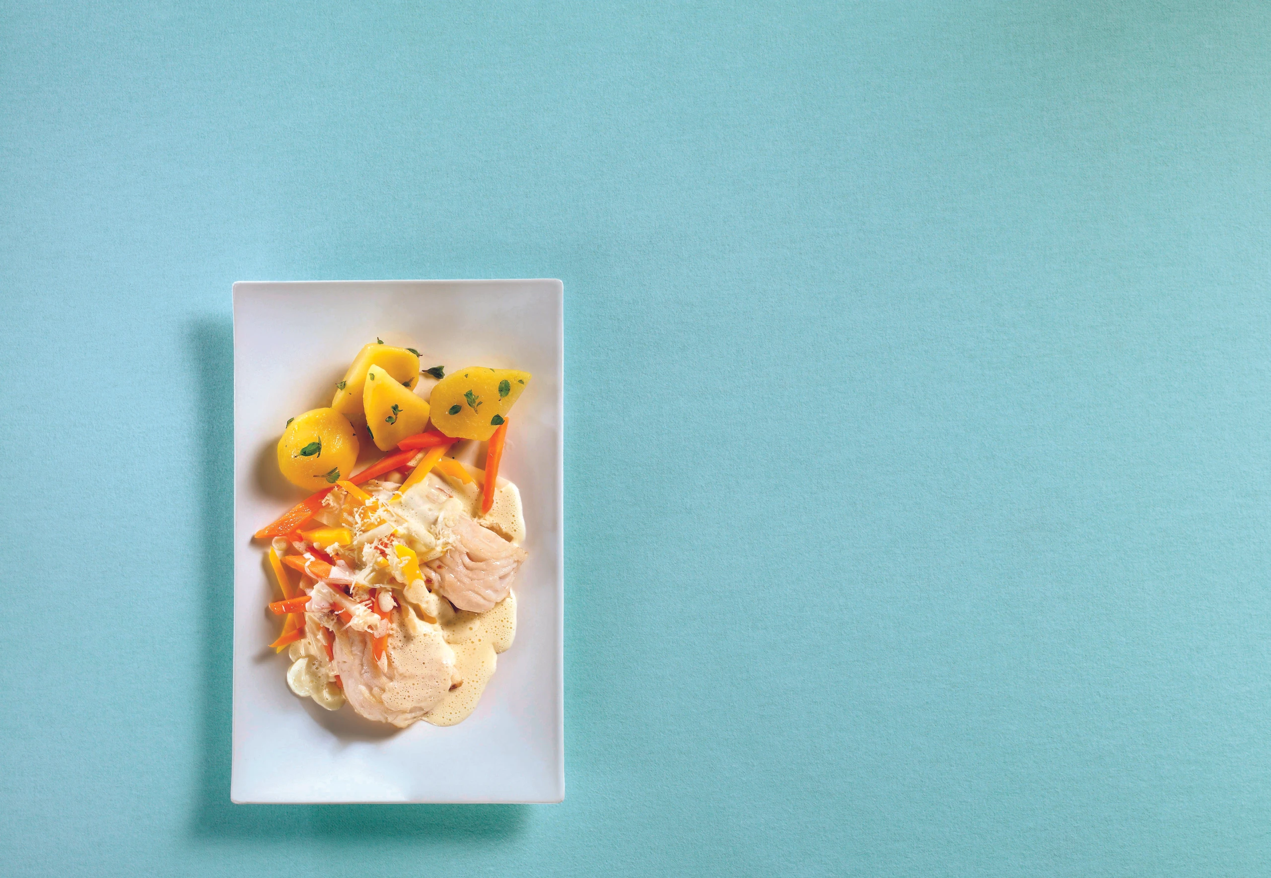 Welsfilet mit Wurzelgemüse und Krensauce