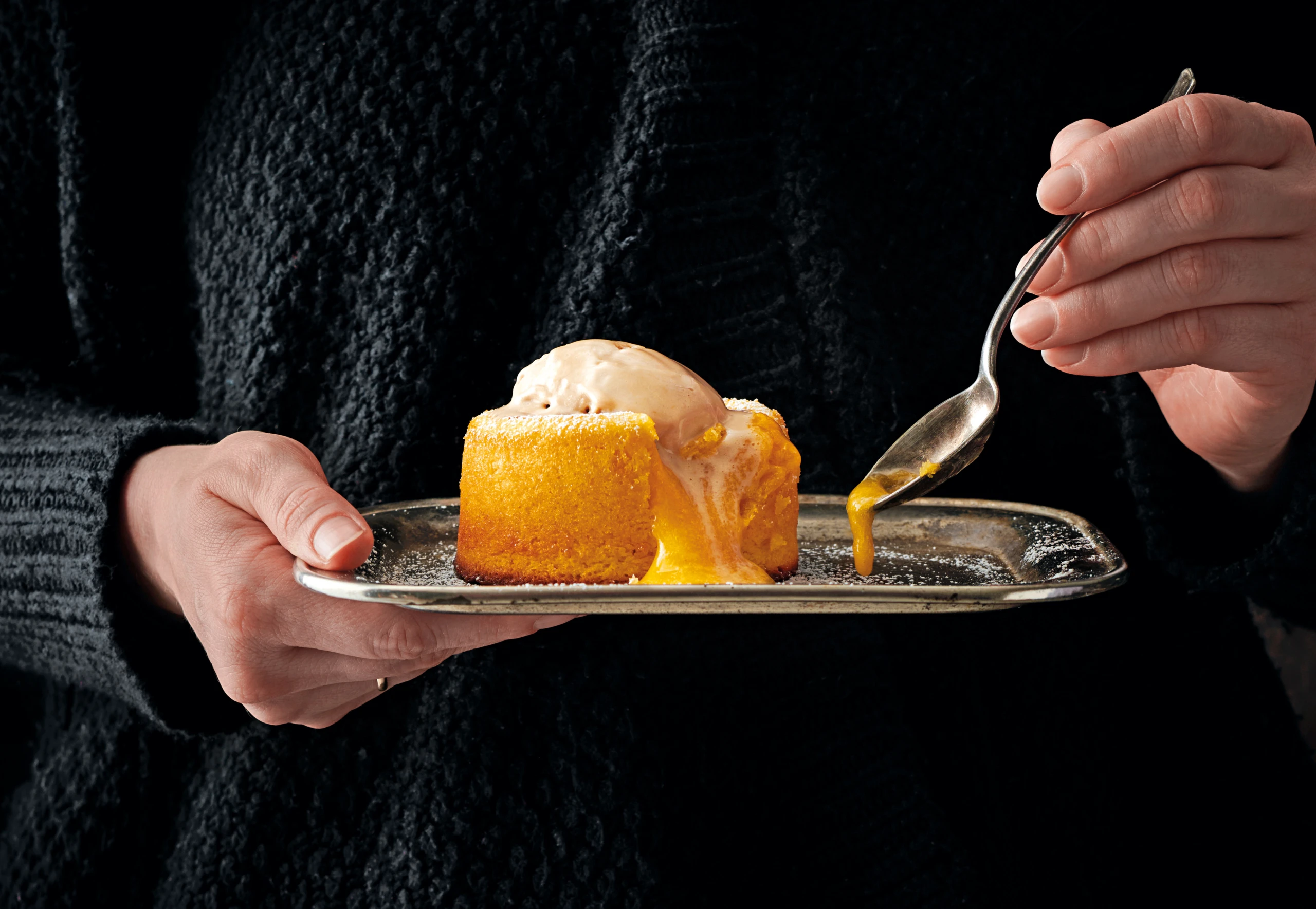 Küchlein im Rohr (mittlere Schiene) ca. 12 Minuten backen. Herausnehmen und auf einen Teller stürzen. Lava Cakes mit Staubzucker bestreuen und mit dem Eis servieren.