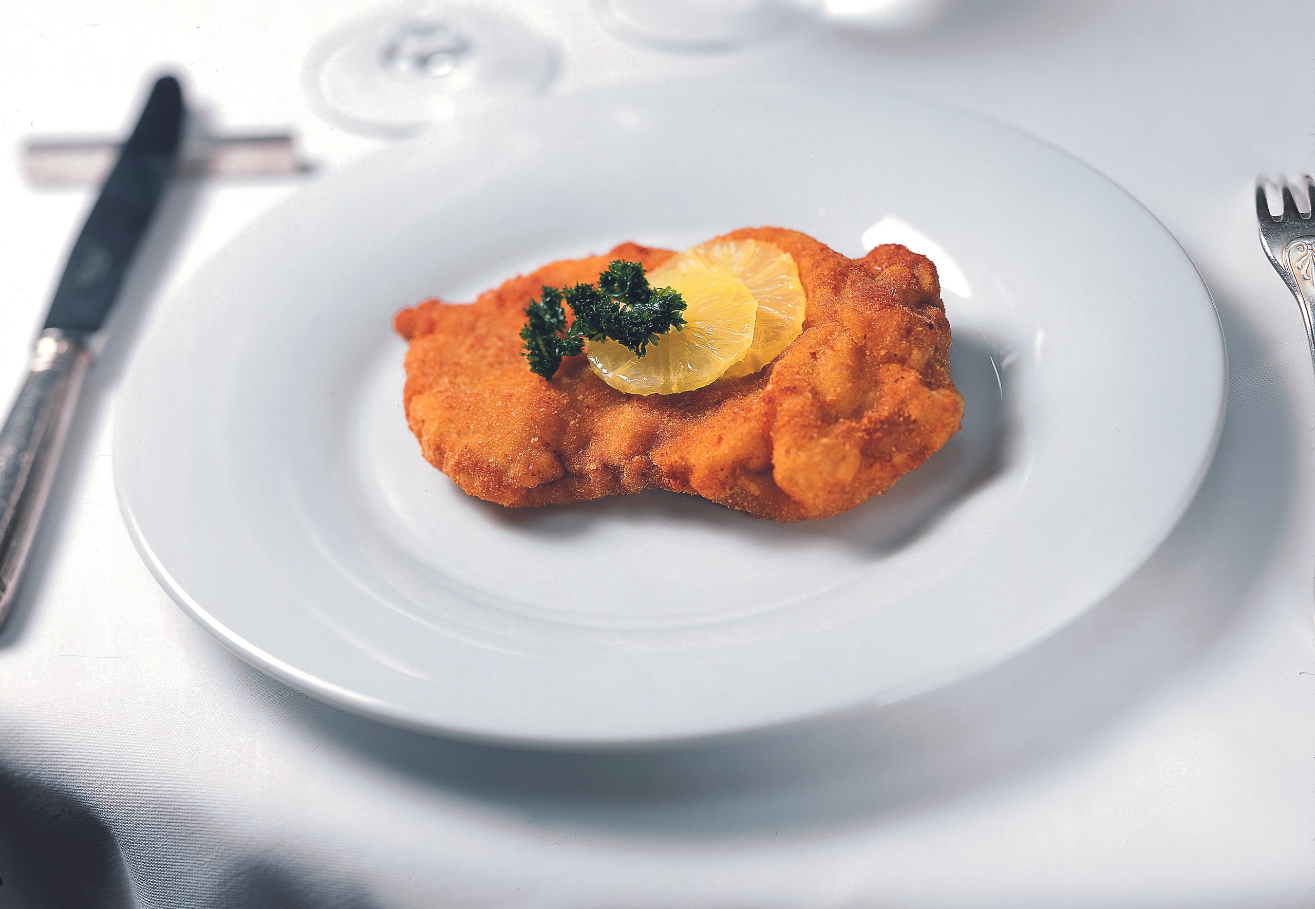 Schnitzel behutsam klopfen, salzen, in Mehl wenden, durch die Eier ziehen und in den Semmelbröseln panieren.