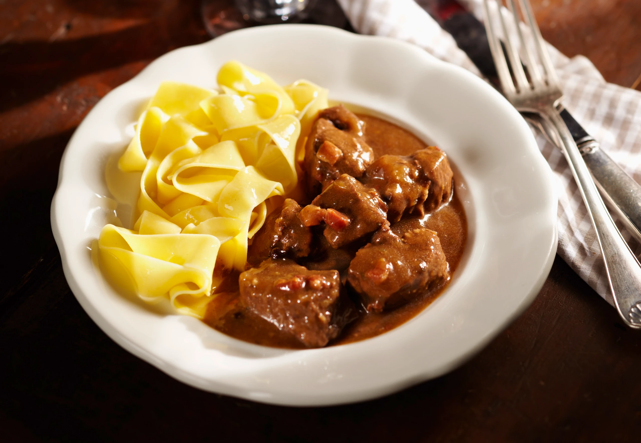 Wildeintopf mit Bandnudeln