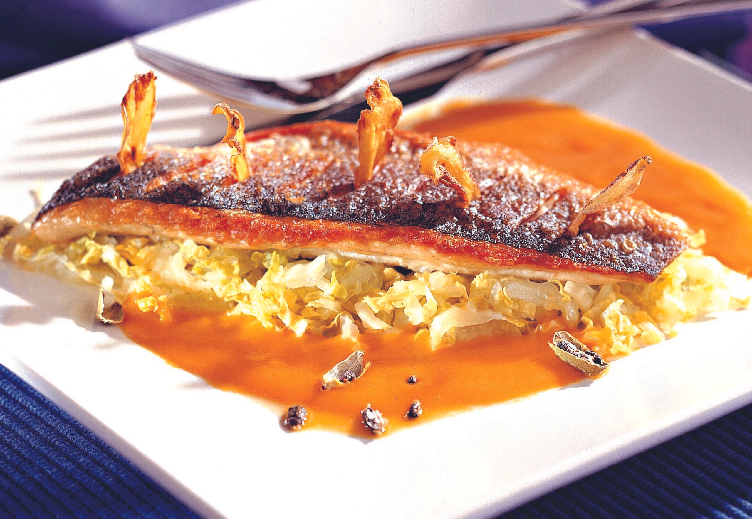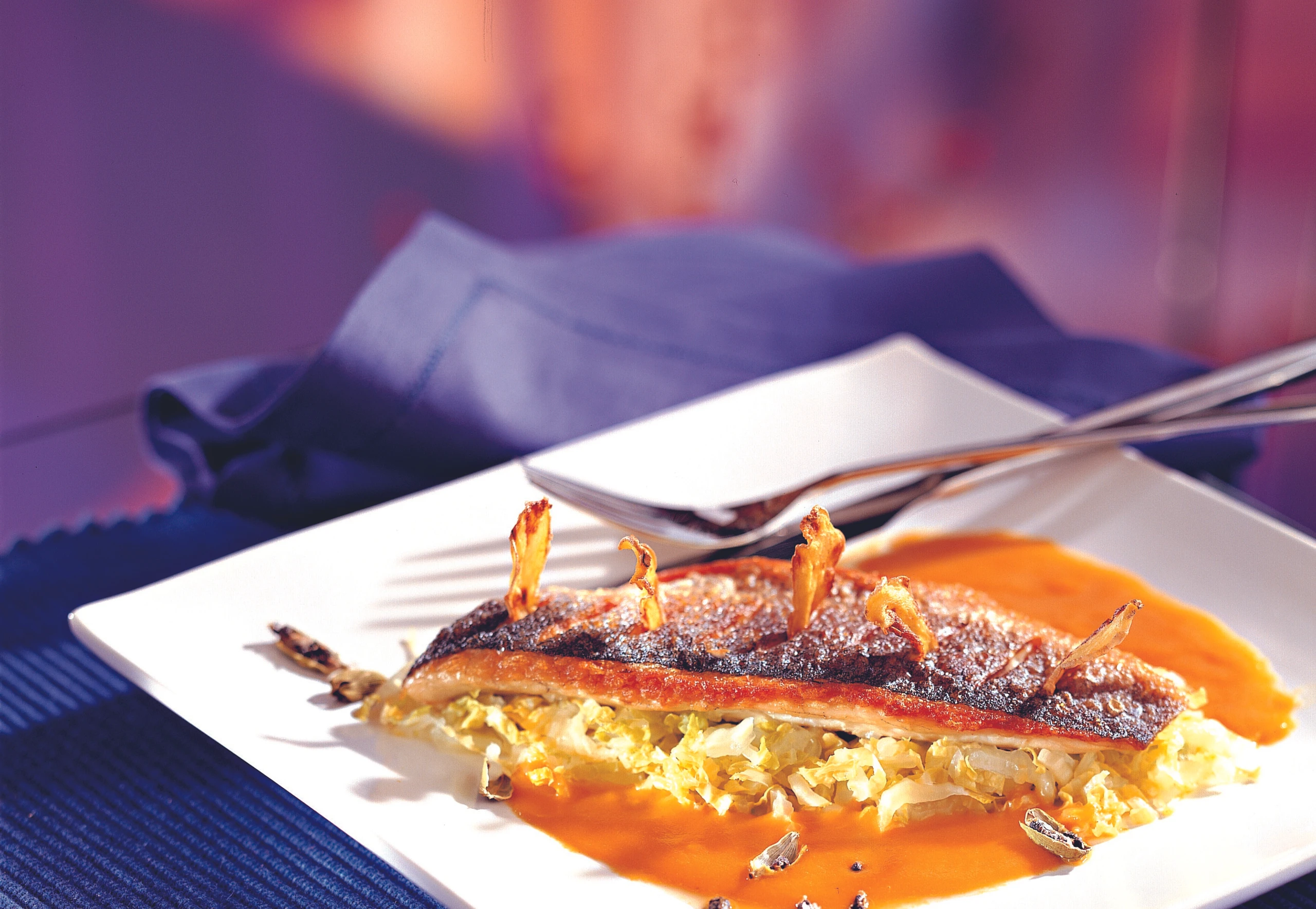 Wolfsbarsch mit Kürbis-Ingwersauce