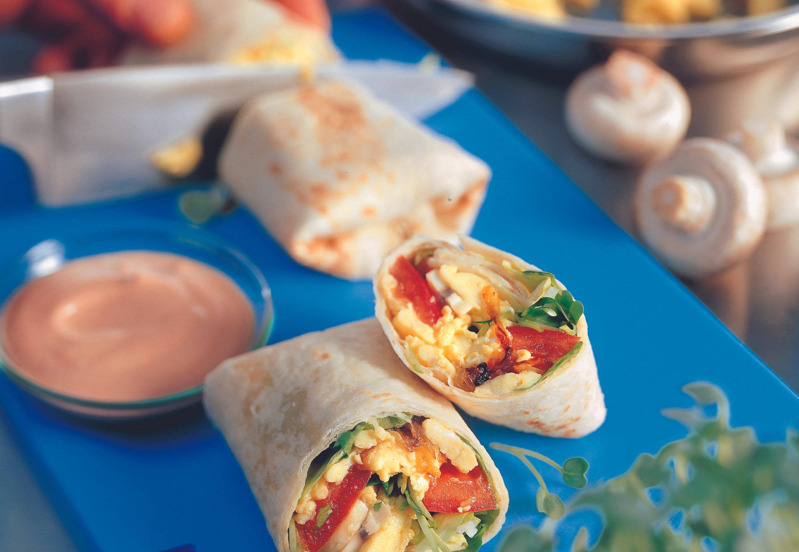Wrap Americana mit Eierspeise und gebratenen Pilzen