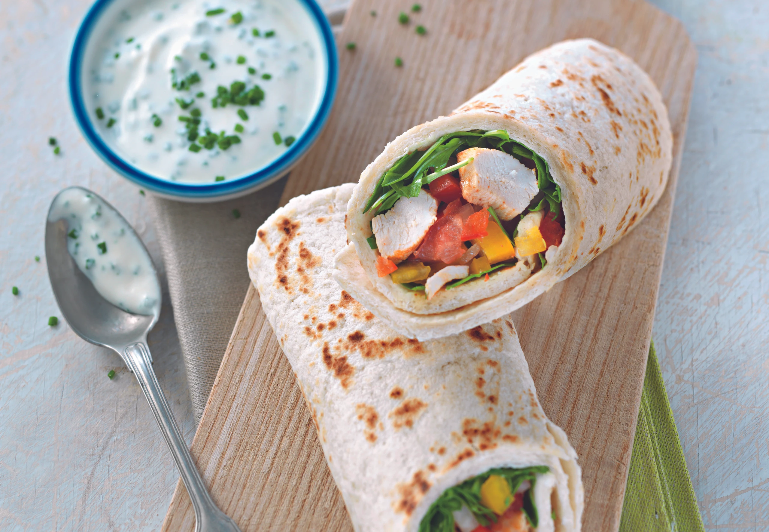 Wraps mit Huhn und Schnittlauchsauce