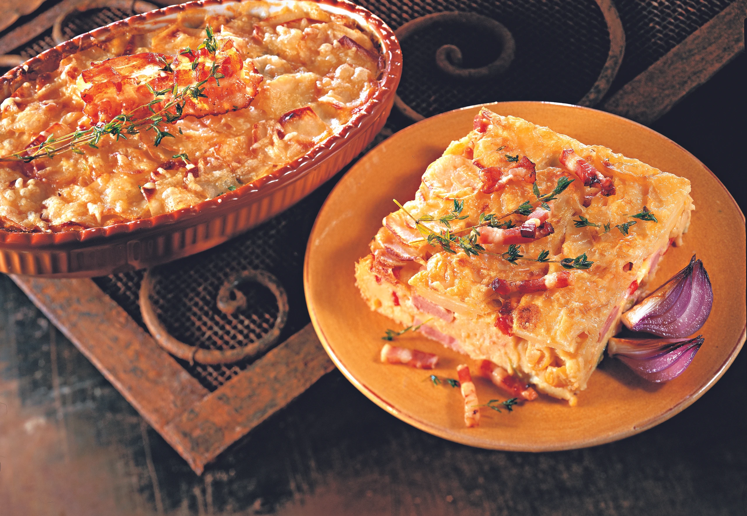 Eine Auflaufform (Inhalt ca. 1 3/4 l) mit Butter ausstreichen und mit Bröseln ausstreuen, dann mit der Hälfte der Erdäpfelscheiben auslegen. Wurstmasse gleichmäßig darauf verteilen und mit den übrigen Erdäpfelscheiben dachziegelartig belegen. Auflauf mit Käse bestreuen und im Rohr (mittlere Schiene / Gitterrost) ca. 40 Minuten backen. Auflauf aus dem Rohr nehmen, vor dem Anschneiden ca. 1 Minute rasten lassen.