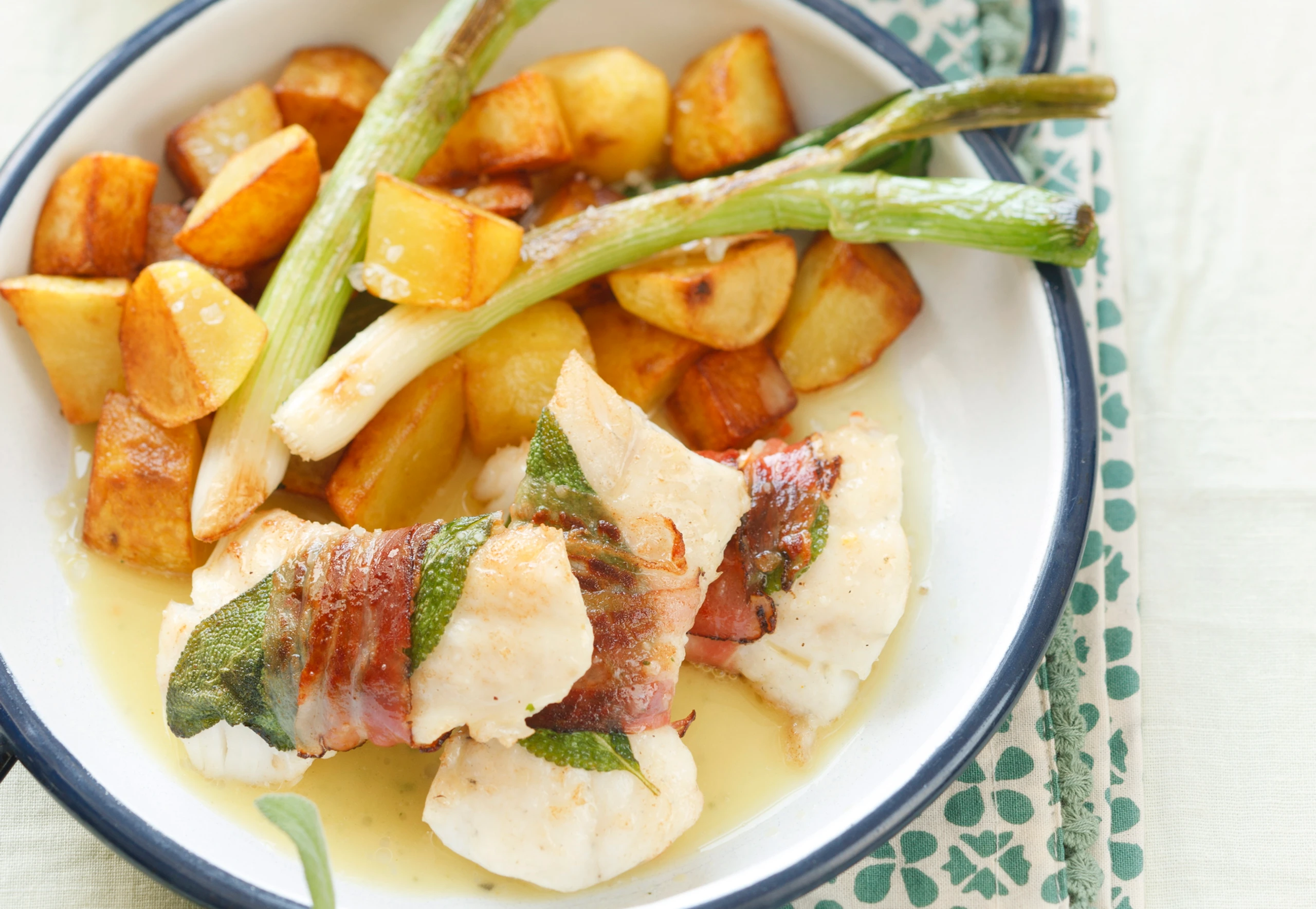 Zander im Speckmantel mit knusprigen Erdäpfeln