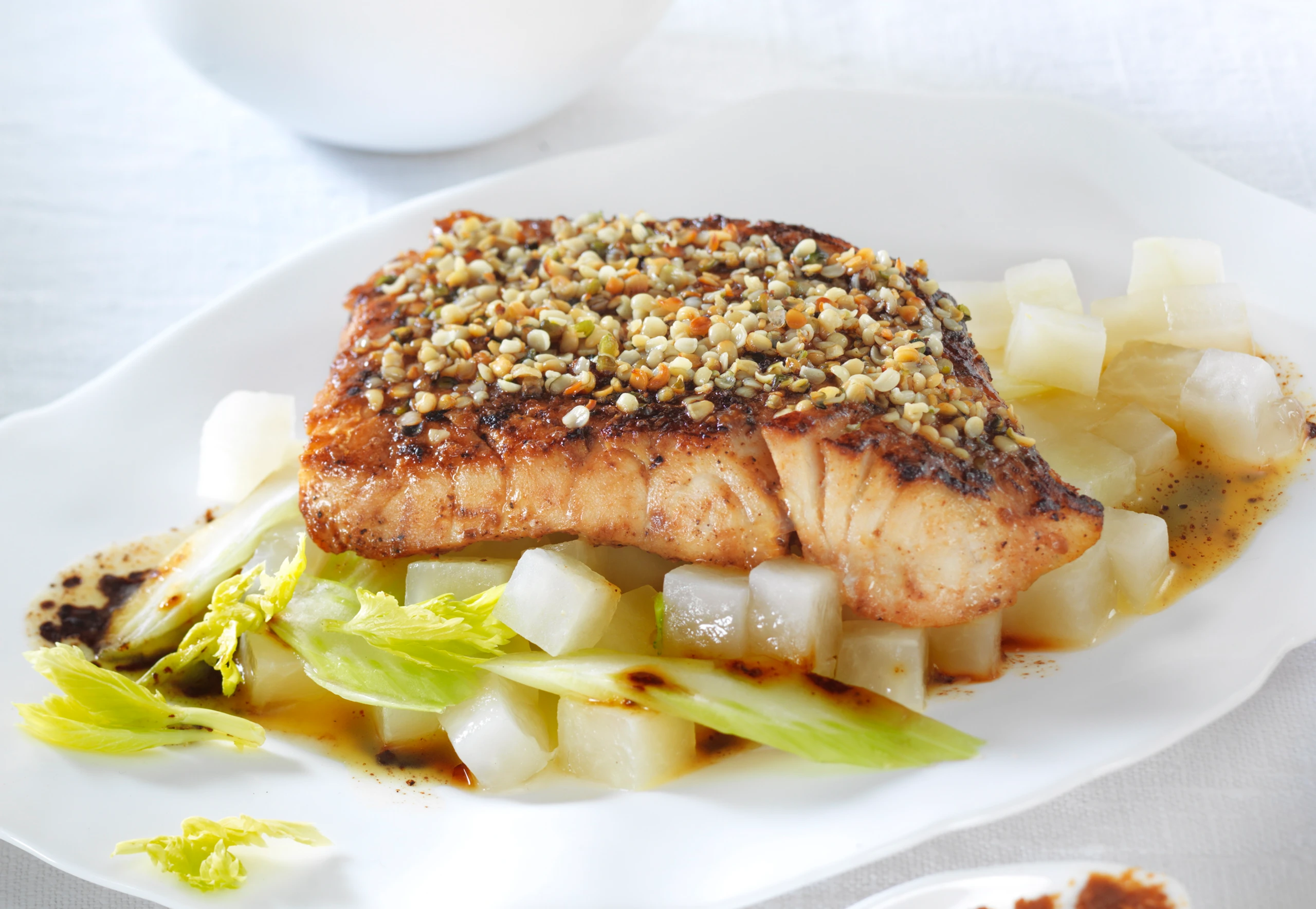 Zander mit Miso auf Kohlrabi-Gemüse