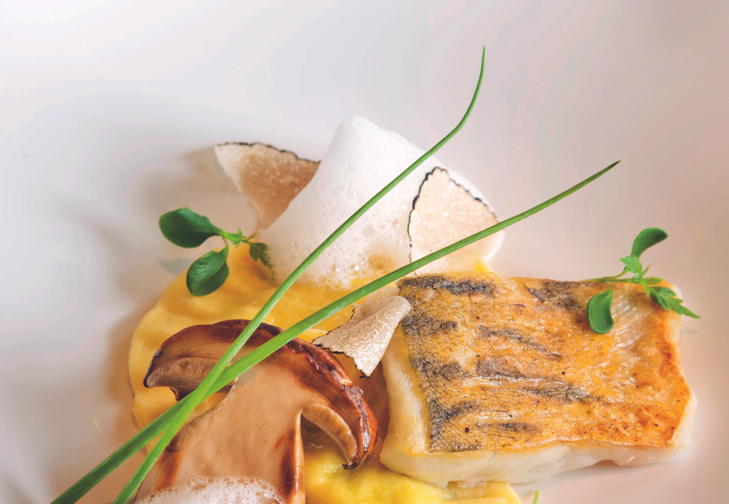 Für den Schaum Milch erwärmen (nicht über 70°C), mit Salz und Pfeffer würzen. Trüffelöl zugeben, Milch aufschäumen. Tascherln aus dem Kochfond heben, mit Zander, Pilzen und Trüffelschaum anrichten. Eventuell mit Schnittlauch und gehobelter Sommertrüffel garnieren.