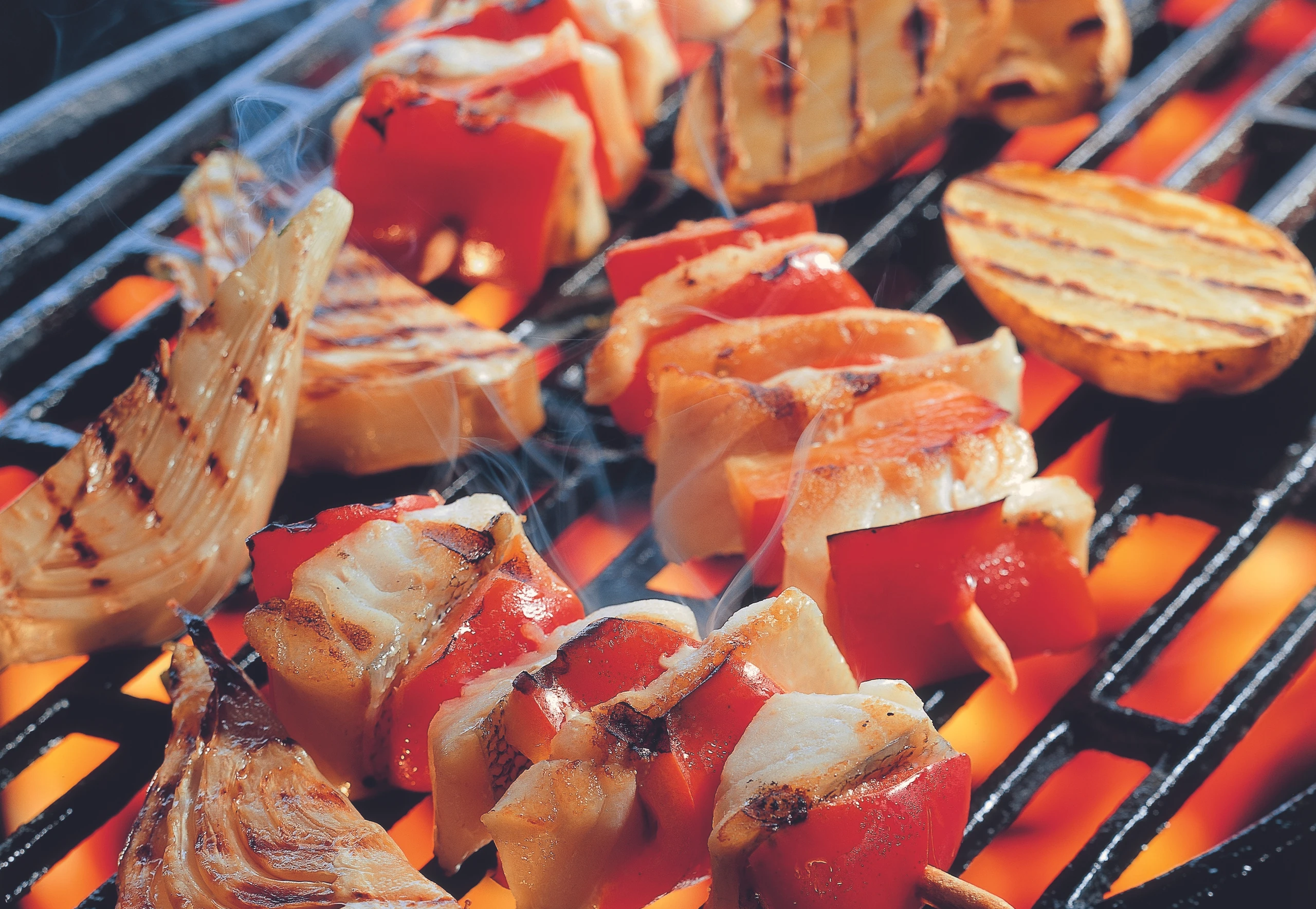 Kleine Holzspieße ein wenig einölen, Fisch- und Paprikastücke abwechselnd darauf stecken, mit Salz, Pfeffer und Zitronensaft würzen und mit Öl bestreichen. Fischspieße beidseitig grillen (dauert ca. 4 Minuten).