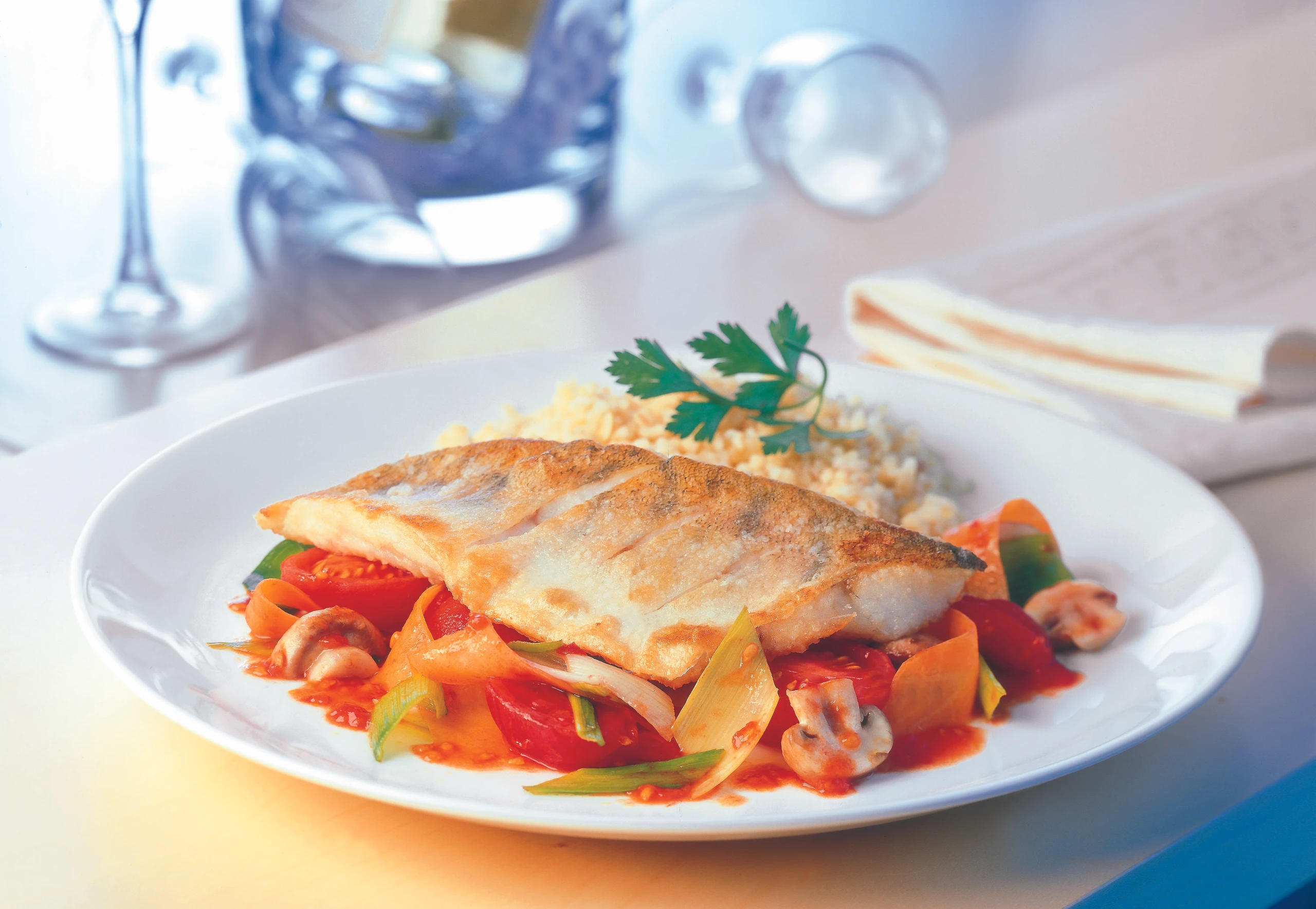 Öl in einer beschichteten Pfanne erhitzen. Zanderfilets auf der Hautseite ca. 4 Minuten braten, wenden und kurz braten, bis sie gar sind. Zander mit Wokgemüse und Bulgur anrichten.