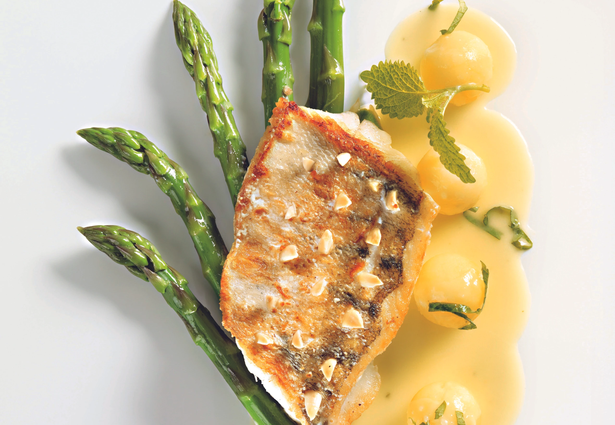 Zanderfilet mit Mandeln und Erdäpfel-Spargelgemüse