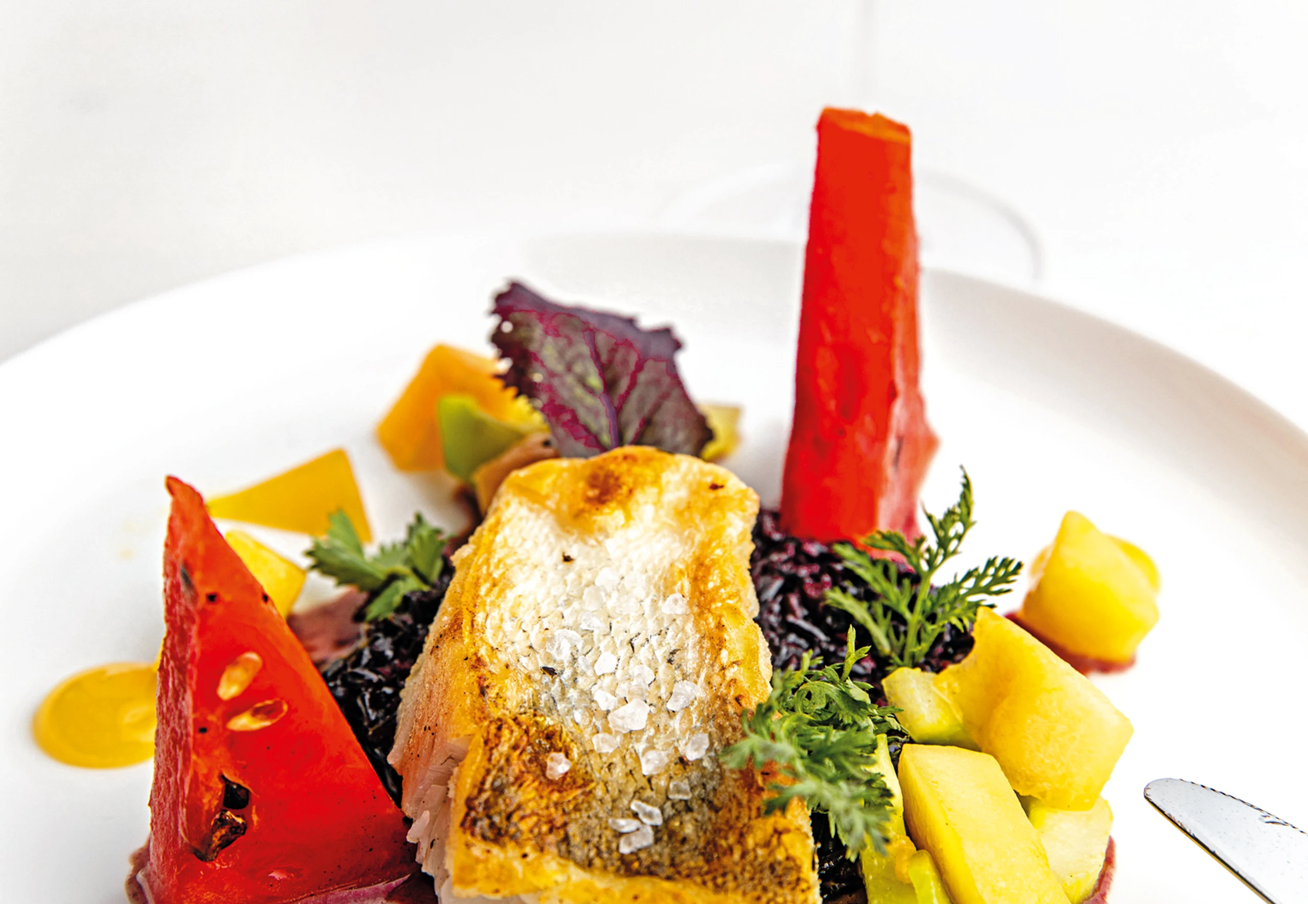 Zanderfilet mit Seewinkler Bio-Reis und Melonen-Gurkengemüse