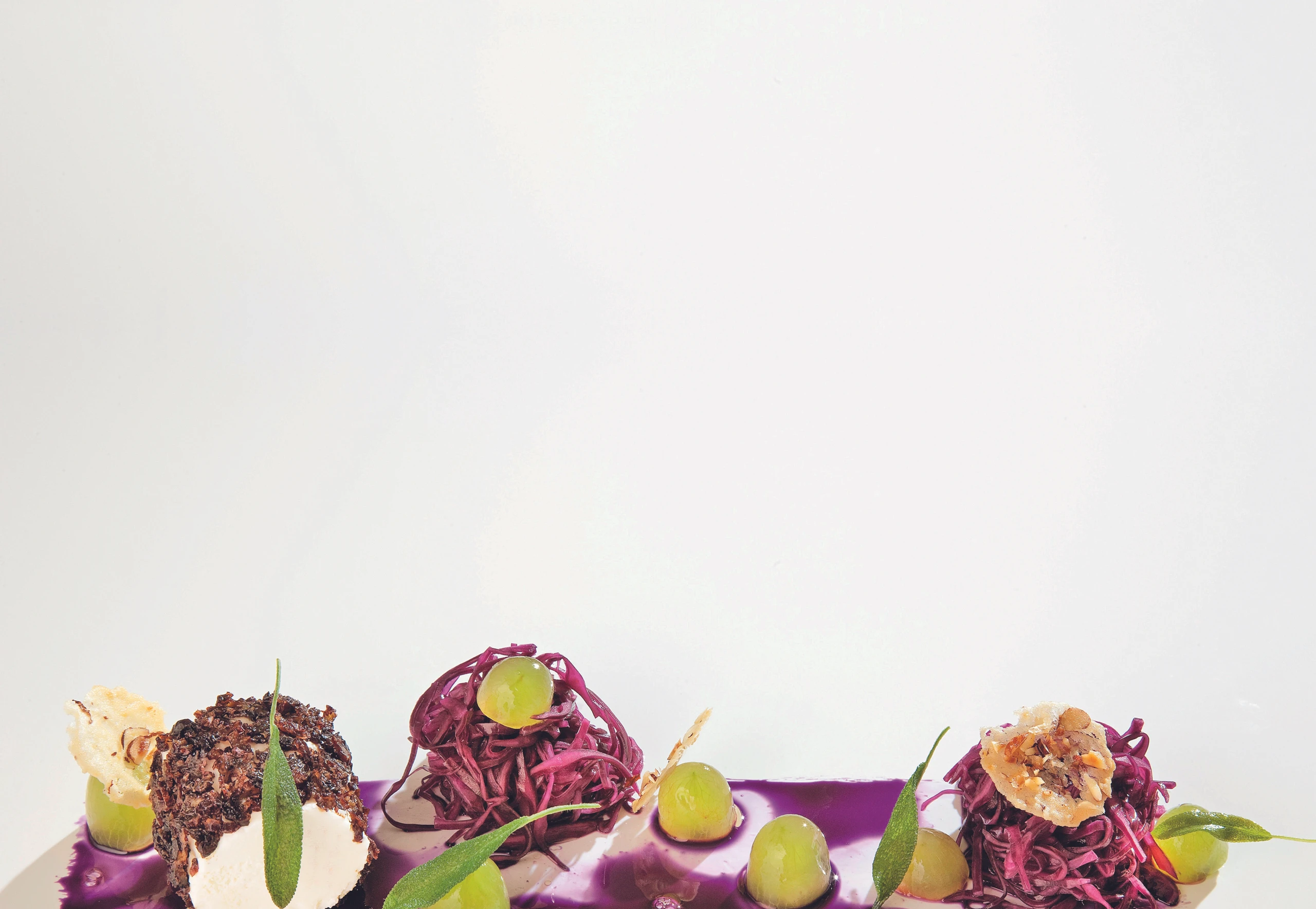 Ziegenfrischkäse mit Rotkraut und Holler-Trauben