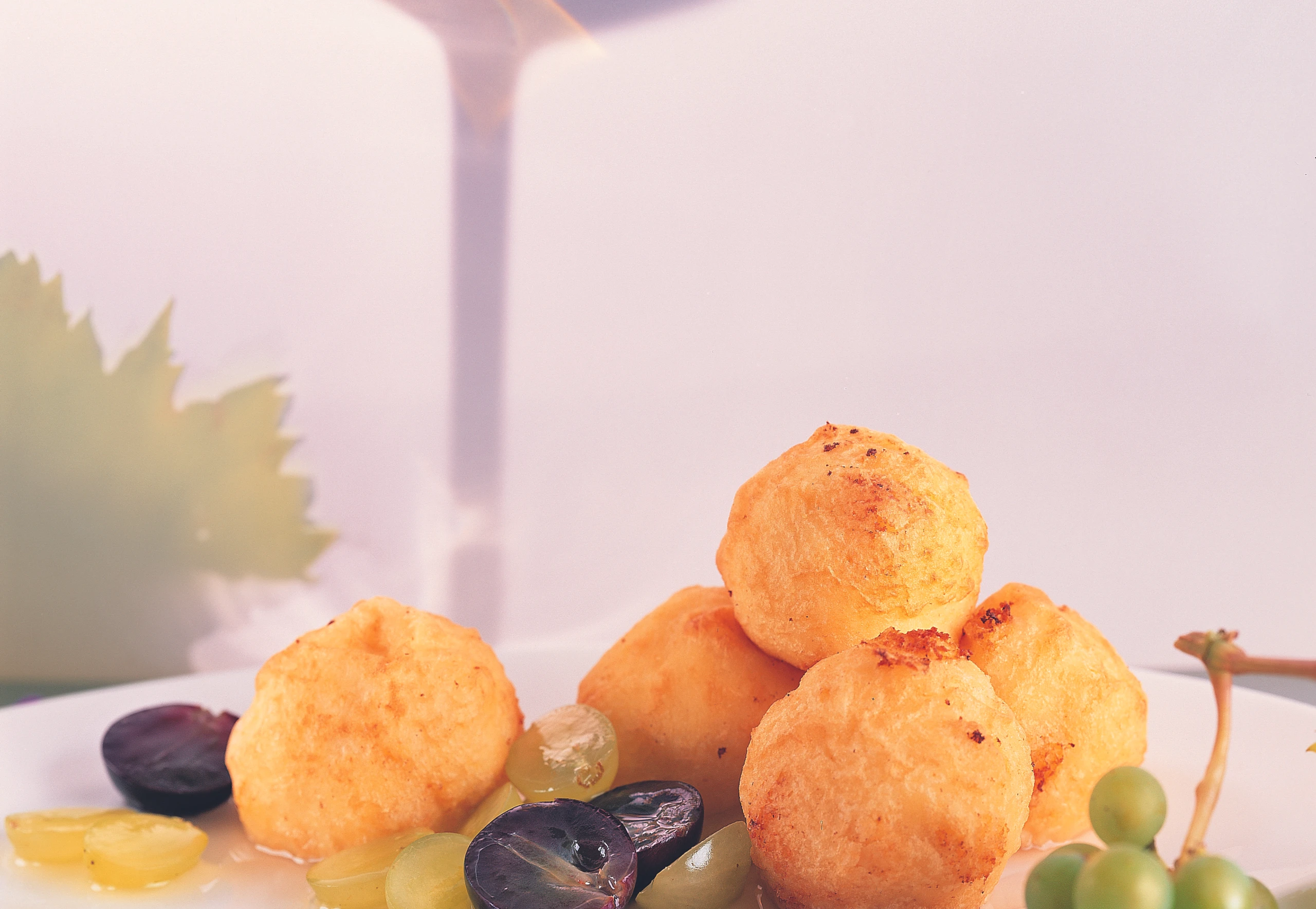 Ca. 3 Finger hoch Öl erhitzen (ca. 165 °C). Aus der Masse mit einem Löffel Nockerl ausstechen und im Öl schwimmend ca. 1 Minute backen. Nockerl mit einem Siebschöpfer herausheben, auf Küchenpapier abtropfen lassen und mit der Traubensauce servieren.