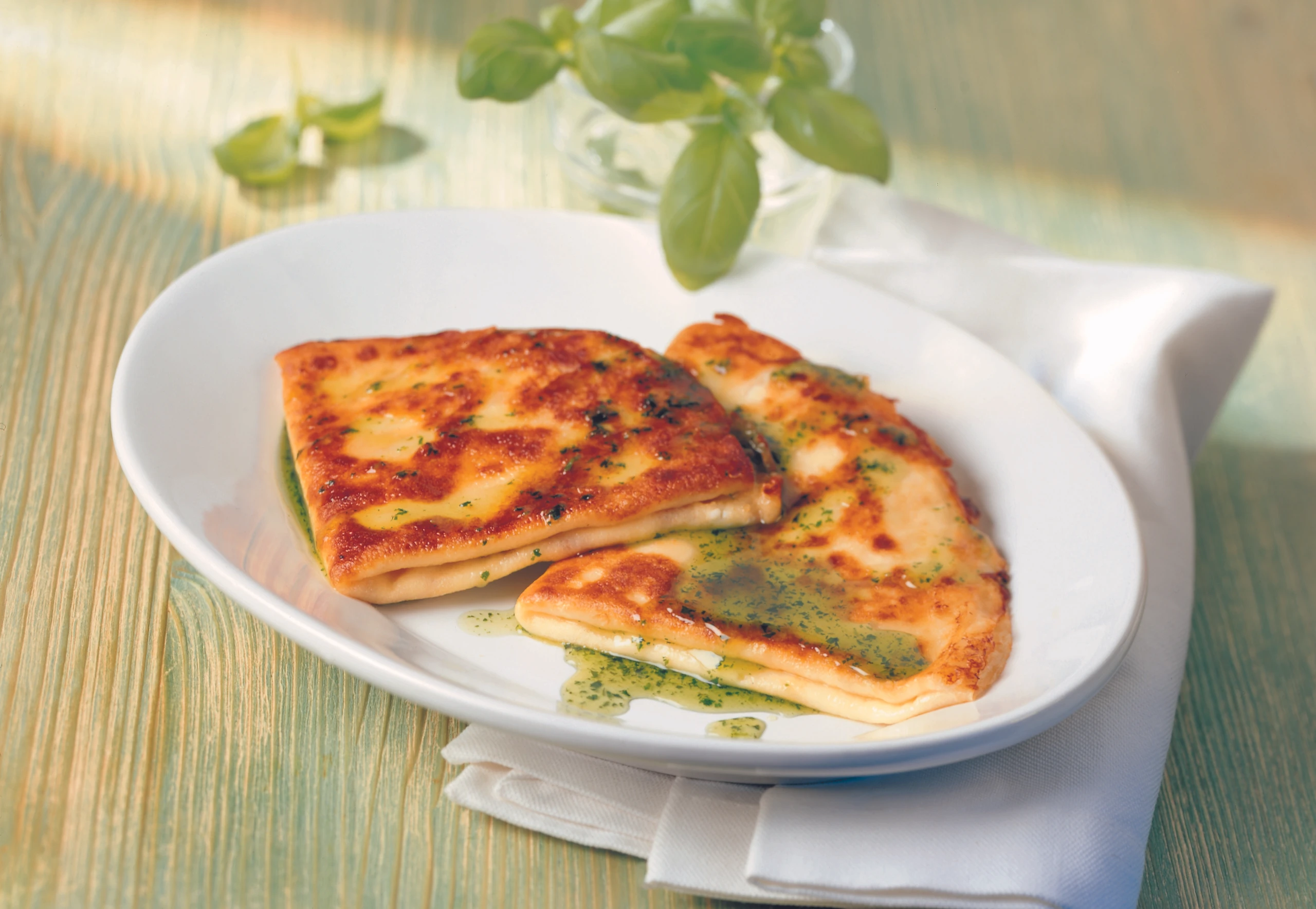Butterschmalz erhitzen. Palatschinken darin beidseitig knusprig braten, auf Küchenpapier kurz abtropfen lassen. Warm mit dem Basilikumsirup anrichten.
