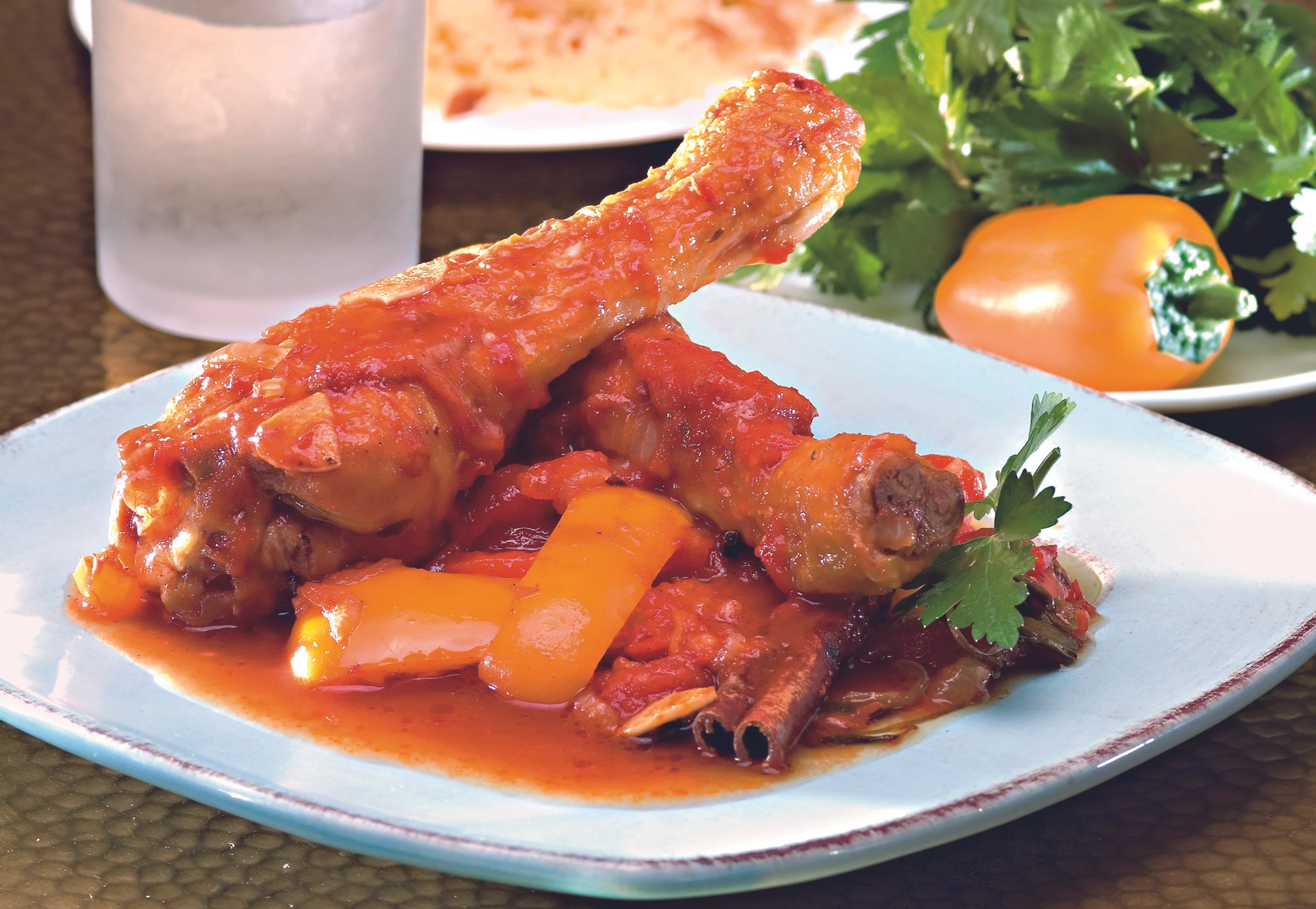 Zimthuhn in Paradeis-Paprikasauce mit Mandel-Couscous