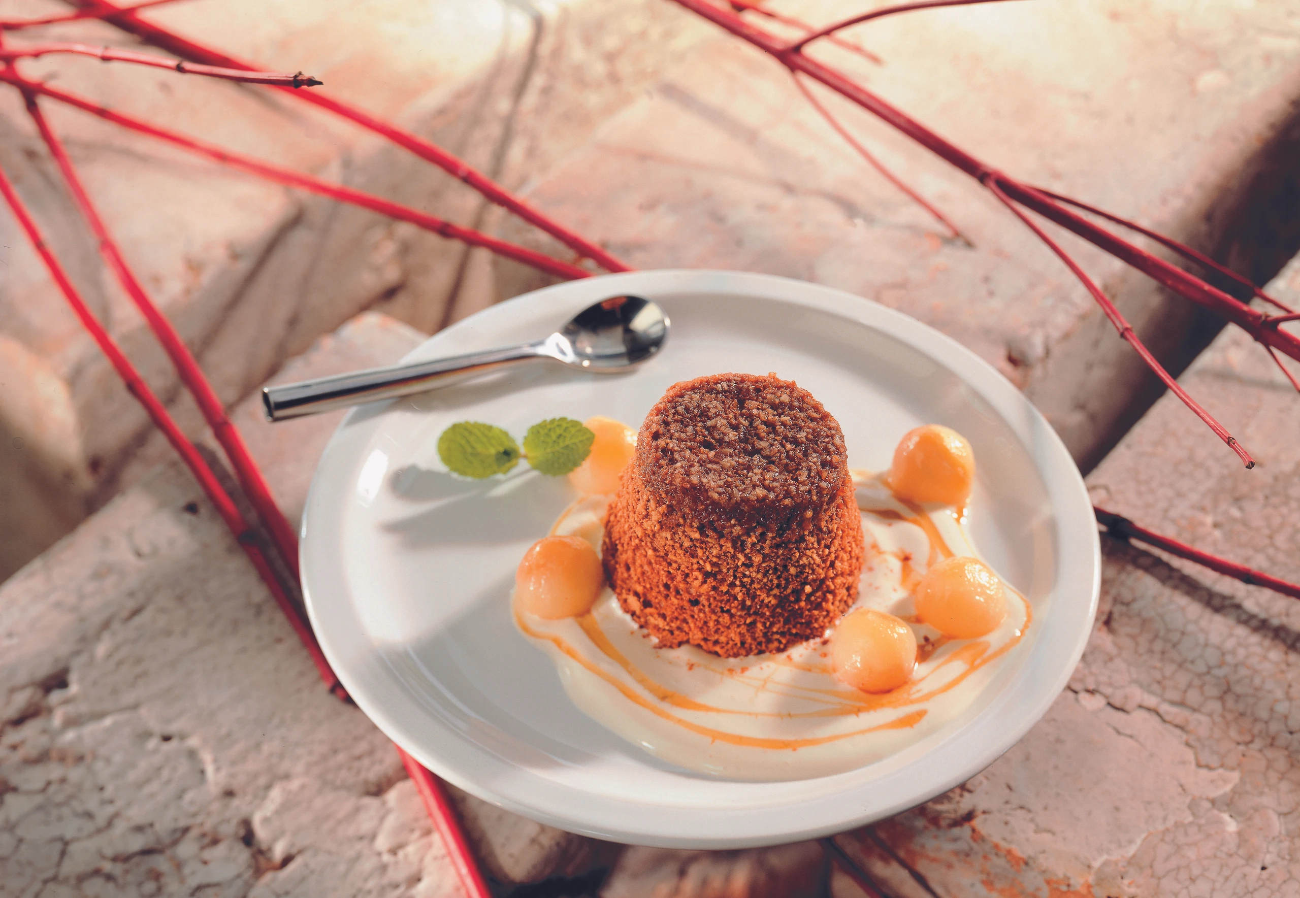 - Die Zimtaufläufe aus dem Rohr nehmen und einige Minuten rasten lassen. Aufläufe auf Teller stürzen und mit der Sauce, den Birnenstücken und Minzeblättern garniert servieren.