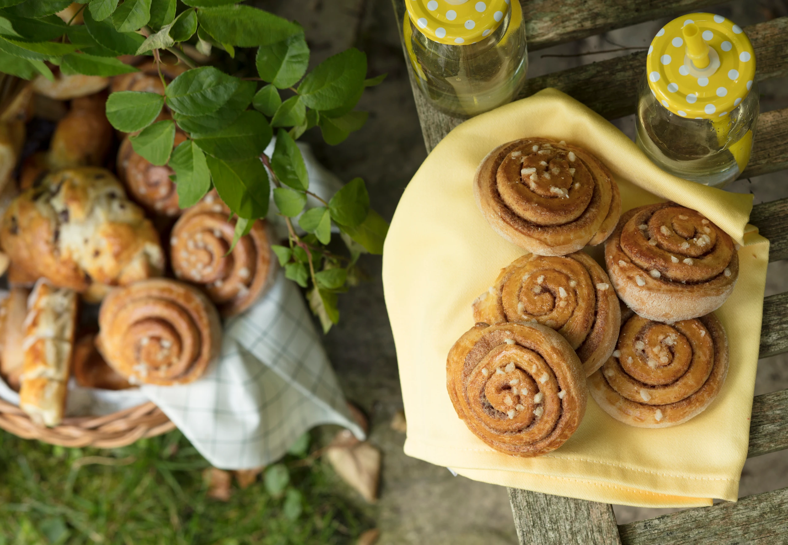Rohr auf 180°C vorheizen. Backblech mit Backpapier belegen. Für die Fülle Zucker und Zimt vermischen. Teig auf einer bemehlten Arbeitsfläche zu einem Rechteck ausrollen und mit Butter bestreichen. Zucker-Zimtmischung darüber streuen. Teig eng einrollen und in 16 Scheiben schneiden.
