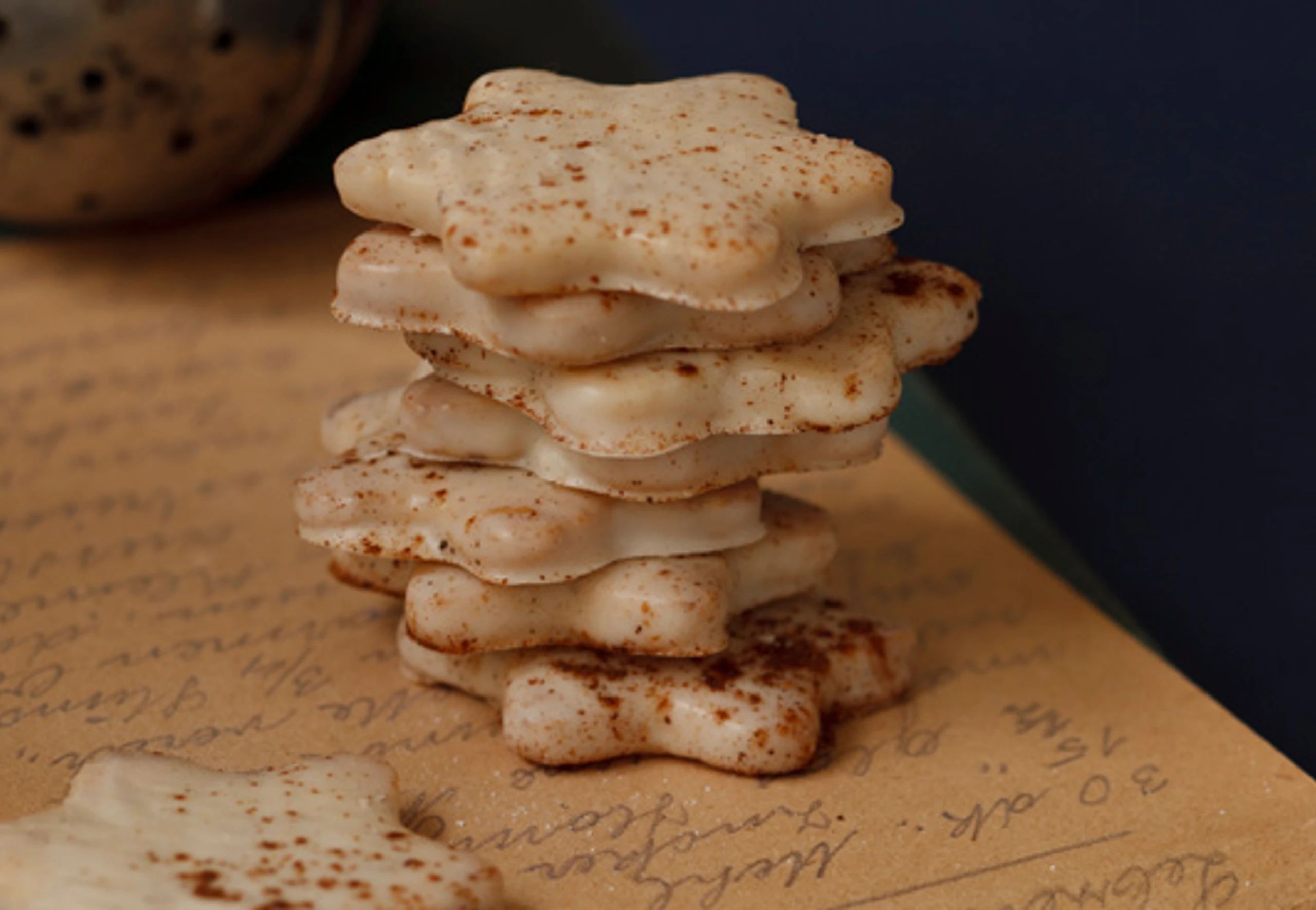 - Schokolade und Kokosfett hacken und im Wasserbad schmelzen. Kekse mit Schokolade glasieren (am einfachsten mit einem Pinsel auftragen) und mit Zimt bestreuen. Glasur fest werden lassen.