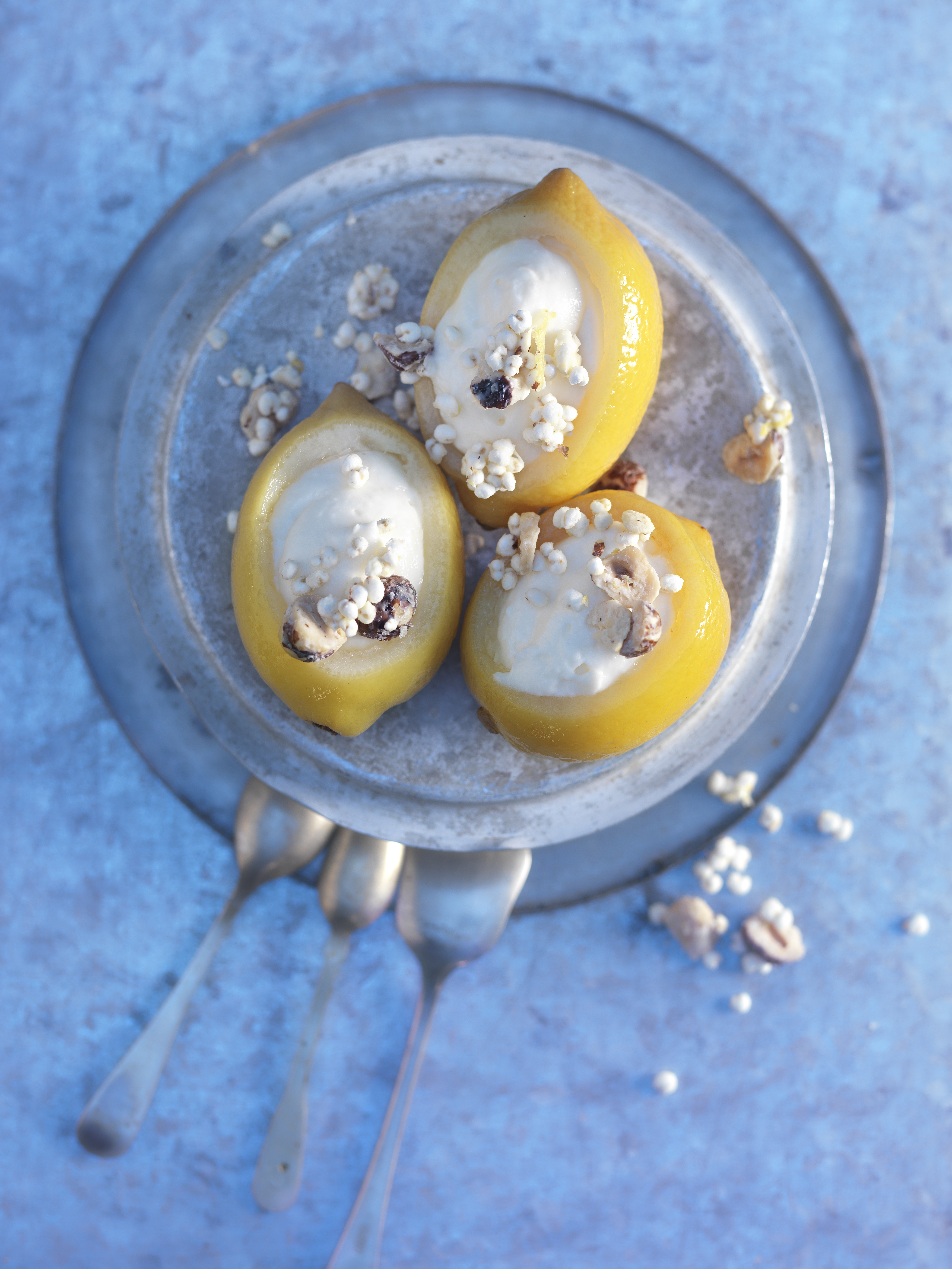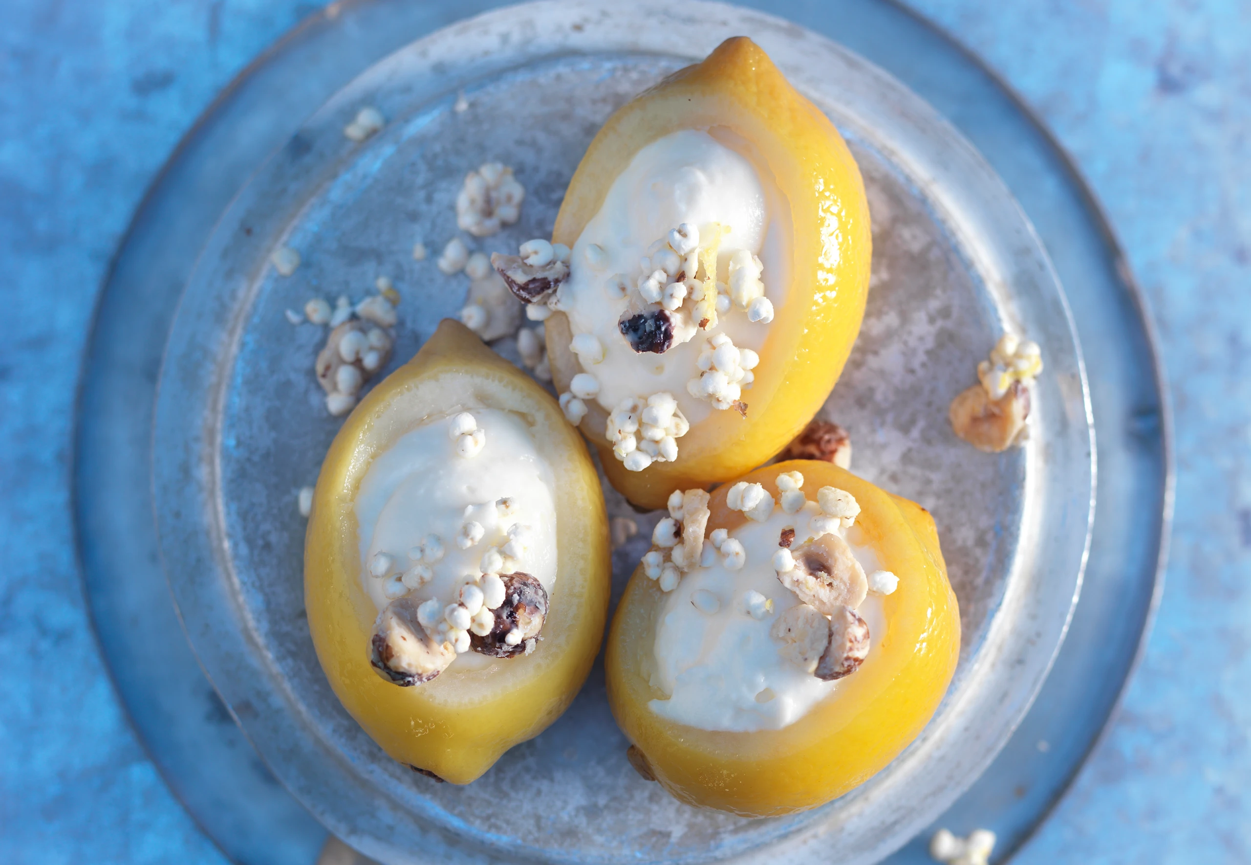 Zitrone mit Zitronenmousse und Knusperhirse