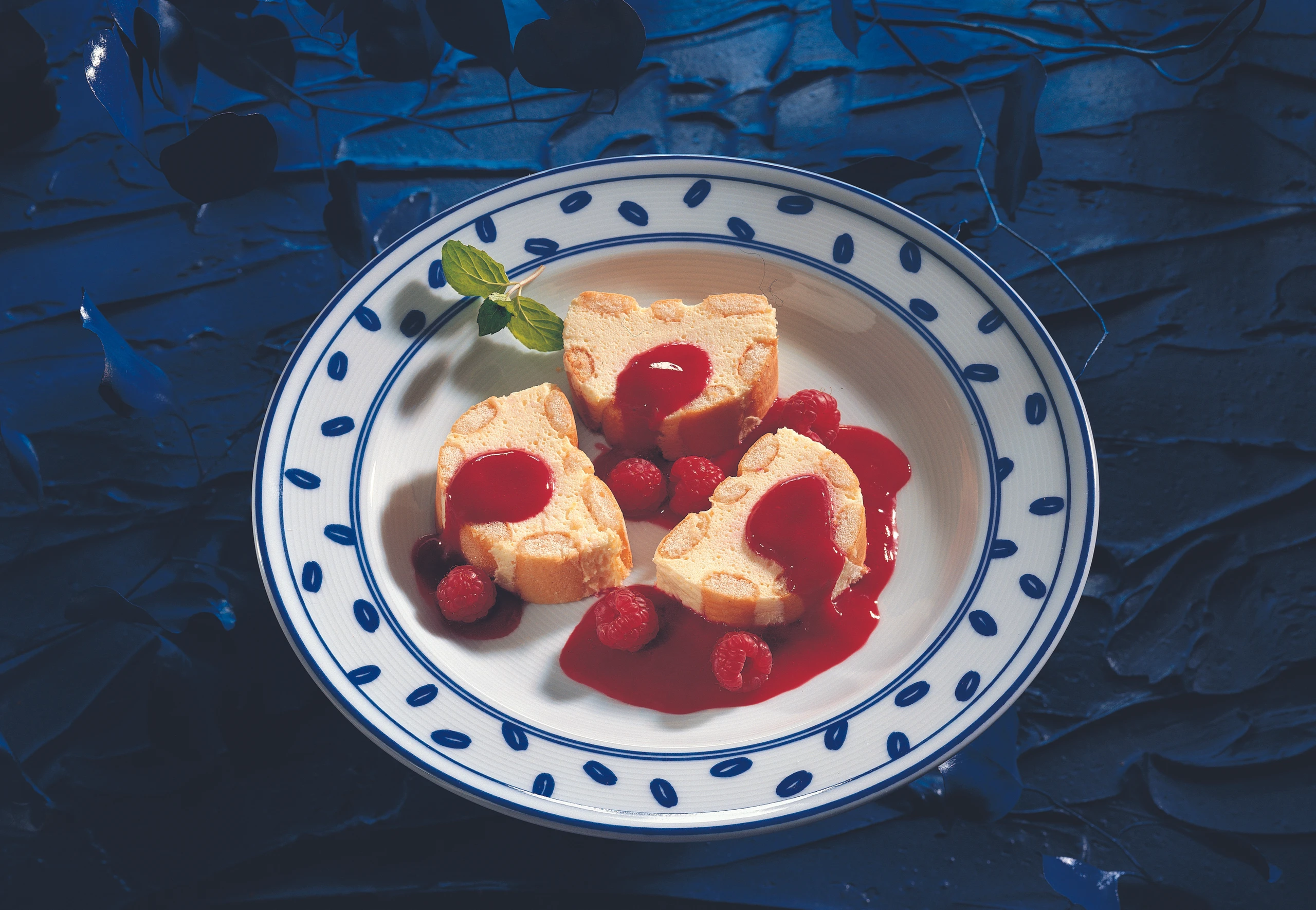 Form aus dem Kühlschrank nehmen und die Folie entfernen. Schnitte aus der Form stürzen, in Scheiben schneiden. Die Zitronencremeschnitten mit Minze, Himbeeren und Himbeersauce (siehe Rezept) auf gekühlten Tellern anrichten.