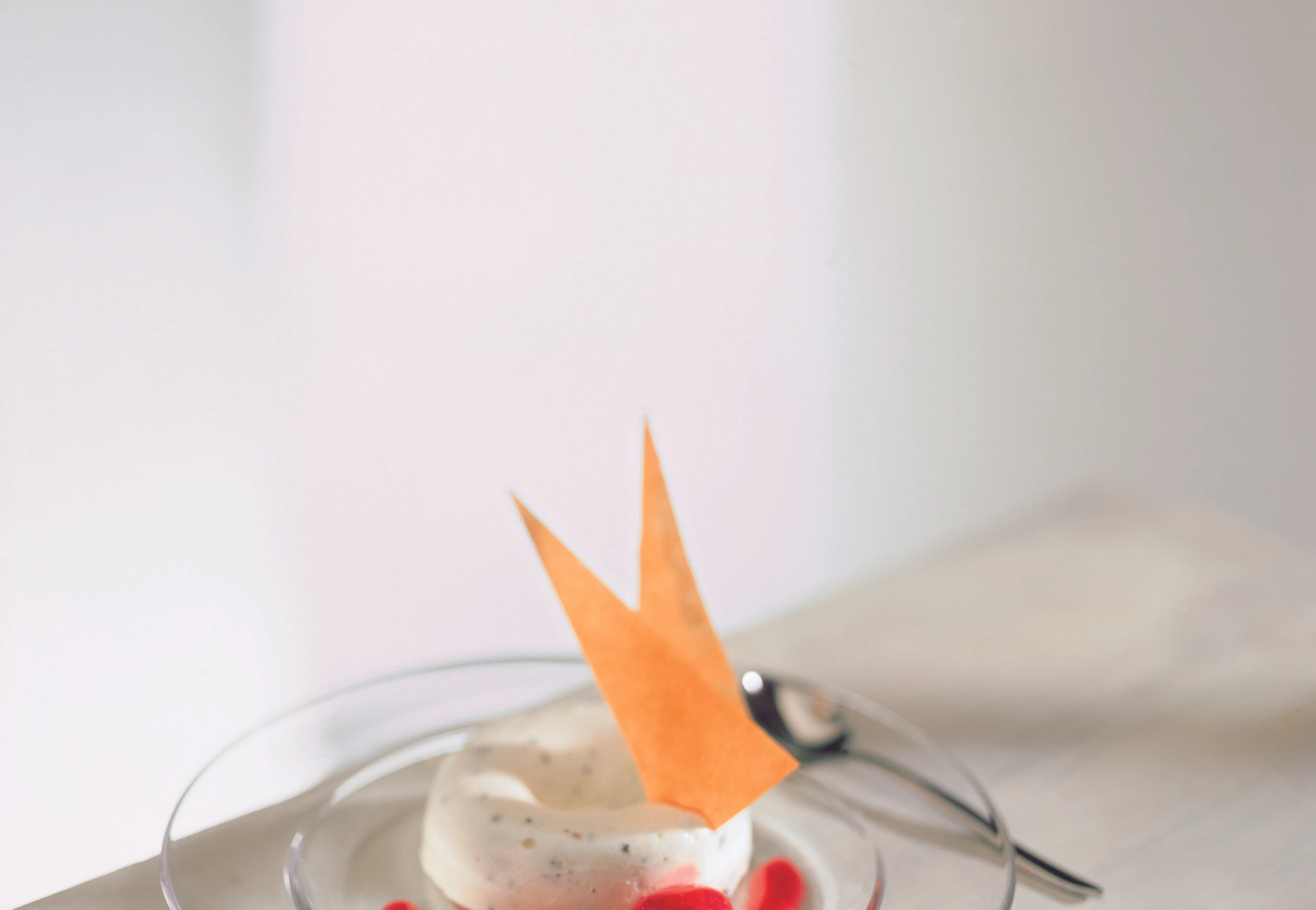 Förmchen kurz in heißes Wasser tauchen, Cremen auf Teller stürzen, mit Himbeeren, Himbeersauce und den vorher zubereiteten Strudelecken (siehe Rezept) garniert servieren.