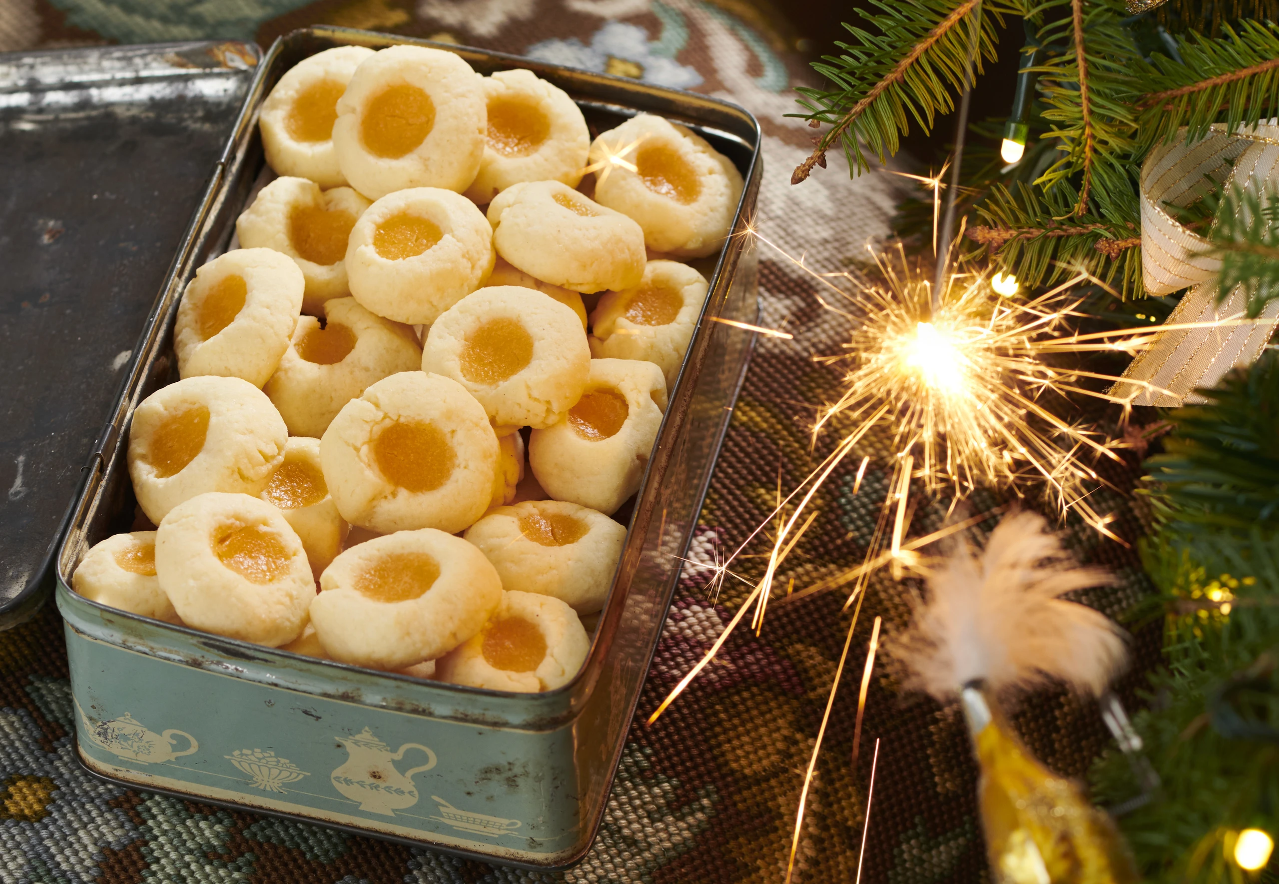Restlichen Lemon Curd in einen Dressiersack geben und in die Mulden füllen. Kekse im Rohr ca. 12 Minuten hell backen. Nach der Hälfte der Backzeit die Bleche tauschen, damit die Kekse gleichmäßig gebacken werden. Kekse herausnehmen, auskühlen lassen und in einer Dose aufbewahren.