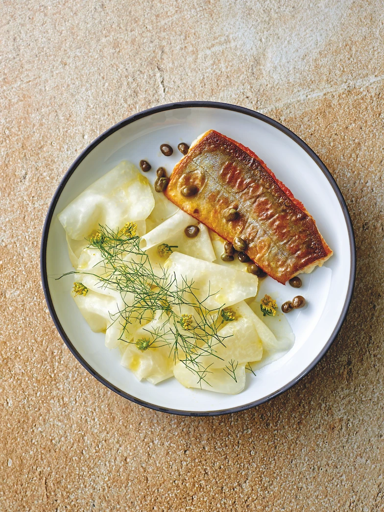 Zitroniger Bachsaibling mit Kohlrabisalat