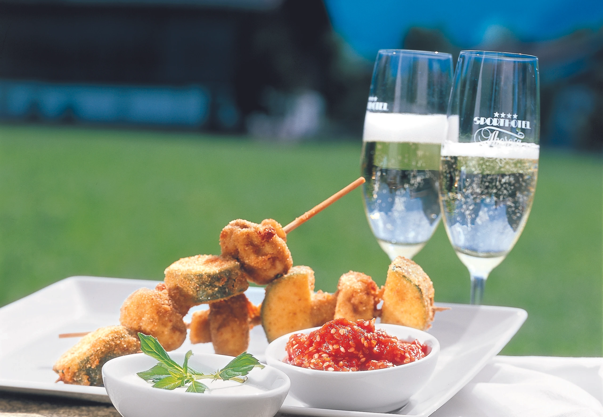 Zucchini-Champignon-Kushi mit Tomaten-Sesam-Dip und Wasabi-Dip
