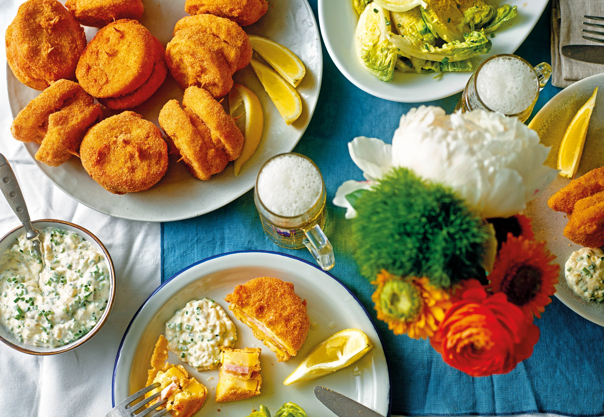 Ca. 4 Finger hoch Öl erhitzen und die Päckchen darin goldbraun backen. Mit einem Gitterlöffel herausheben und auf Küchenpapier abtropfen lassen. Cordon bleu mit Sauce servieren. Dazu passt grüner Salat.
