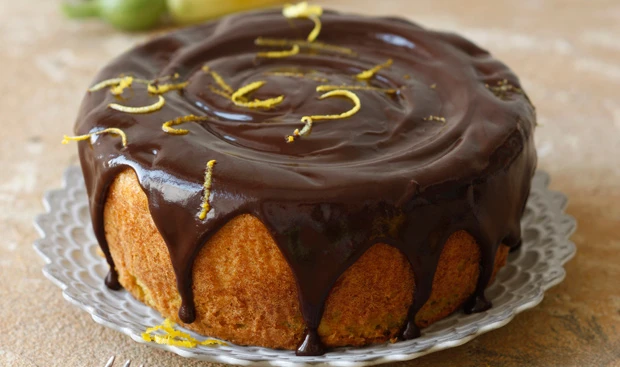 Kuvertüre über Dampf schmelzen, Kuchen damit überziehen, eventuell mit Zitronenzesten garnieren.