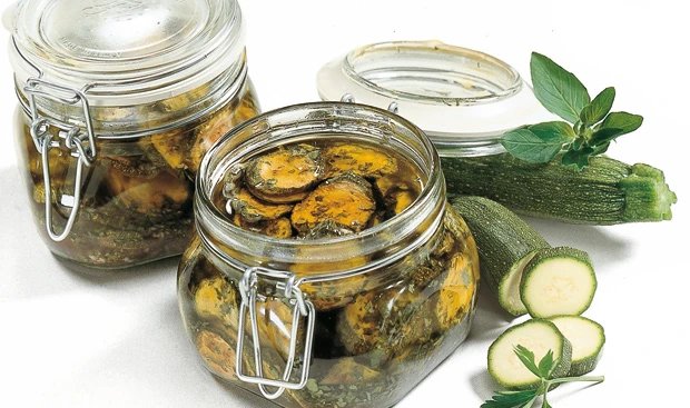 - Zucchini mit der Marinade vermischen und in Gläser füllen. Zucchini gut verschlossen mindestens 24 Stunden im Kühlschrank ziehen lassen.