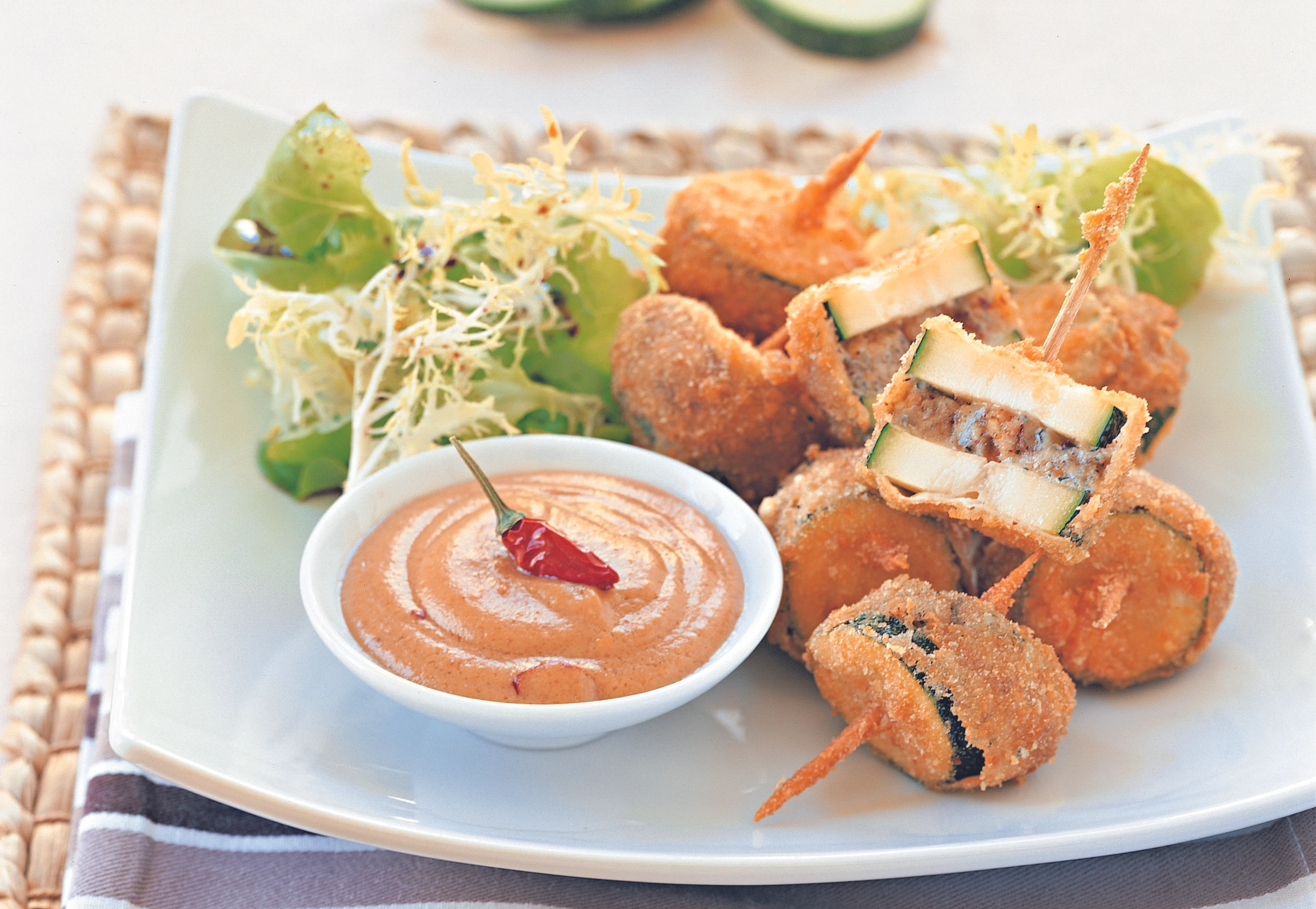 Panierte Zucchini-Päckchen mit Erdnusssauce